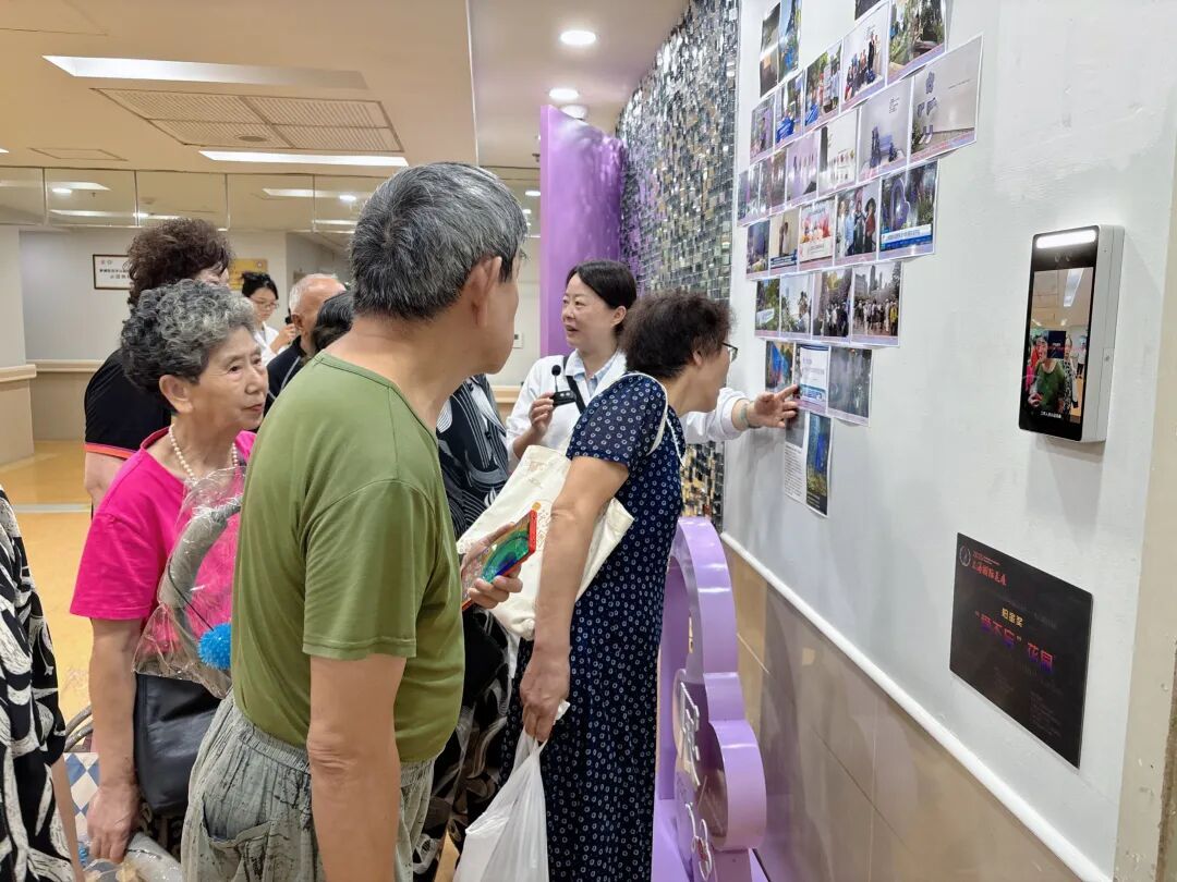 活动伊始,游园环节以“认知健康”为独特线索,巧妙串联起中心内的多个特色功能区,为居民们打造了一场沉浸式的健康学习与文化体验之旅。居民们手持打卡卡片,兴致勃勃地依次参观了慢病健康管理支持中心、健康书房、豫客堂、脑健康认知概念空间、社区标准化口腔诊室、中医馆以及城市记忆超市等特色区域。每到一处“景点”,他们不仅能深入了解豫园社卫丰富多彩的文化建设,还能在参观过程中有效激发自身的空间记忆与定向能力。大家一边漫步欣赏,一边回忆往昔岁月,彼此间热烈交流分享,现场不时传来阵阵欢声笑语。