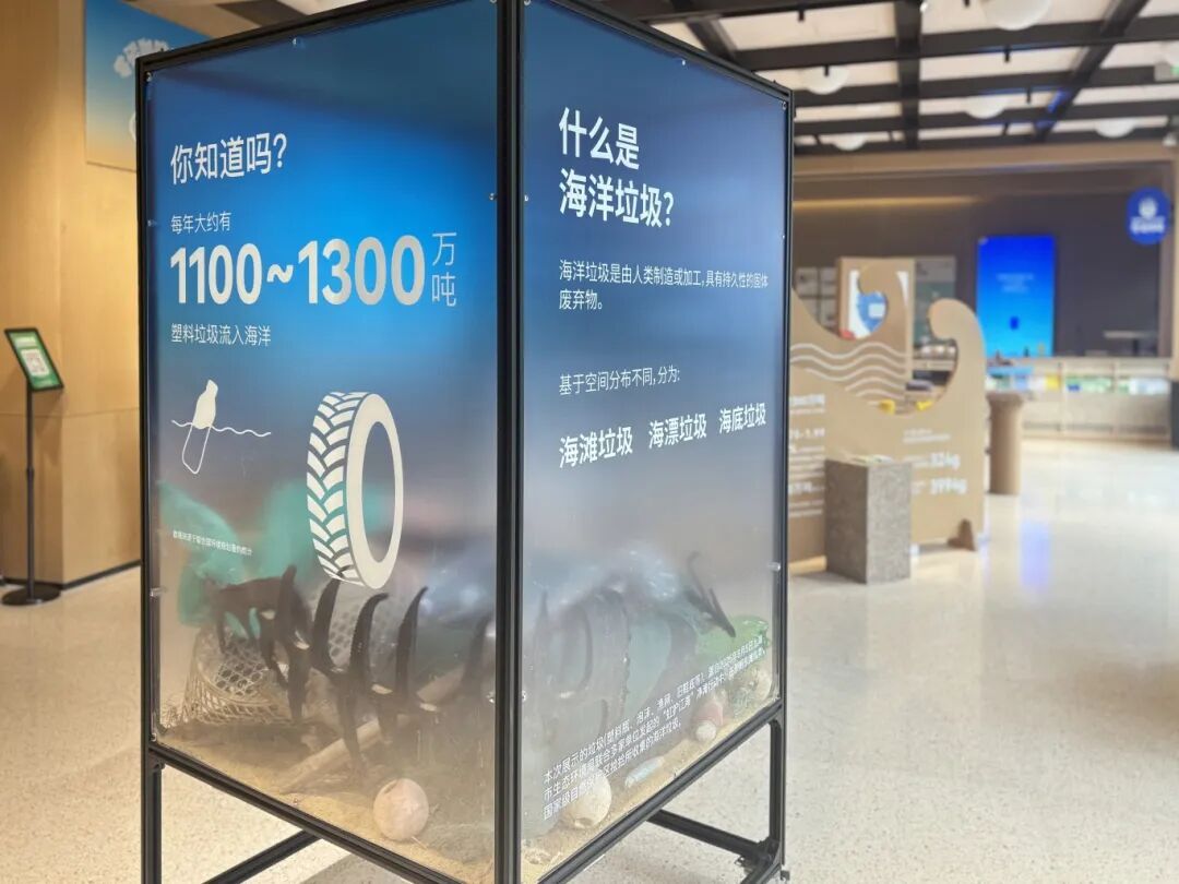 上海探秘馆一楼的主题展览 焕新登场啦! 全球气候变暖、海平面上升……这些环境危机看似遥远,实则与每个人息息相关。近日,上海碳秘馆一楼的“自然之力、海韵共生”主题展览全新亮相。本次展览聚焦“生态文明建设”和“碳中和行动”核心议题,通过“蓝色危机”“探行海洋”“触摸自然”“互动创享”四大板块,带领观众深入了解低碳生活、海洋环境保护、海洋垃圾再生等内容,唤醒公众环保意识。 你知道吗?每年大约有1100-1300万吨塑料垃圾流入海洋。展区内不仅呈现了一组组震撼的图像和详实的数据,更有一处真实海洋垃圾构成的造景装置。透过半透明的柱形展柜,能清晰看到旧鞋、饮料瓶、废旧轮胎块等废弃物。“这些可不是道具。”工作人员介绍,里面的所有垃圾都是由区生态环境局联合多部门及企业,从崇明东滩摊头捡拾而来。“我们希望通过这样直观的展示,让大家意识到海洋垃圾就在身边,每个人的小小行动,都可能对海洋环境产生巨大影响。” 展览现场还陈列着许多由海洋垃圾回收再造的可持续产品,并配有详细的文字说明。记者注意到,一个海洋塑料蓝牙音响的外壳,大约由5个塑料瓶制成,而一个再生充电宝的塑料外壳,需要用到大约3个塑料瓶。这里还有自行车内胎制成的马鞍包、咖啡渣打造的咖啡分享杯、绿藻制作的塑料袋等……这些创意产品不仅展现了海洋垃圾“变废为宝”的可能性,也为日常生活中的环保实践提供了新思路。 “互动”和“共创”依旧是本次展览的关键词。场地内保留了原有的“零碳咖啡”实验室,并集中展示了低碳生活新时尚联盟成员单位在环保领域的智慧成果和实践案例,为公众搭建起交流共创的平台。 作为上海首家低碳生活主题馆,上海碳秘馆是一座集科普教育、互动体验、成果展示于一体的综合性展馆,致力于传播低碳理念,推广环保生活方式。自开馆以来,已吸引了众多市民和游客前来参观学习,累计到访人数已超16万人次。如今在上海碳秘馆,观众只需扫描展板旁的“随申码”,即可通过“听”与“读”的双重体验,更全面地了解关于“碳”的故事,感受环保的魅力。 快来上海碳秘馆解锁 守护蓝色海洋的环保密码 一起成为绿色生活的践行者吧!