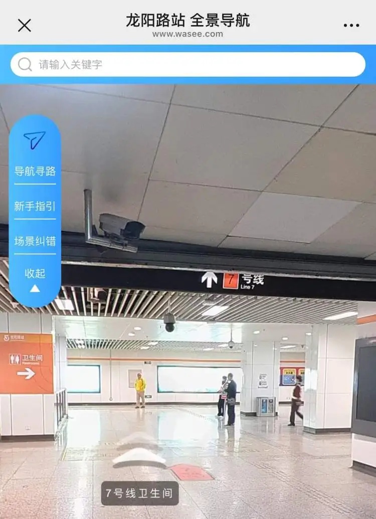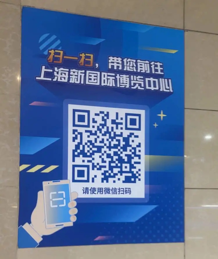 据介绍,遇到新国际博览中心开展会,龙阳路站人流量巨大,工作人员不仅要引导人流,还要提供指路等服务,由此,枢纽站在2号口附近张贴了指路二维码,提供从2号口到新国际博览中心的VR实景导航。