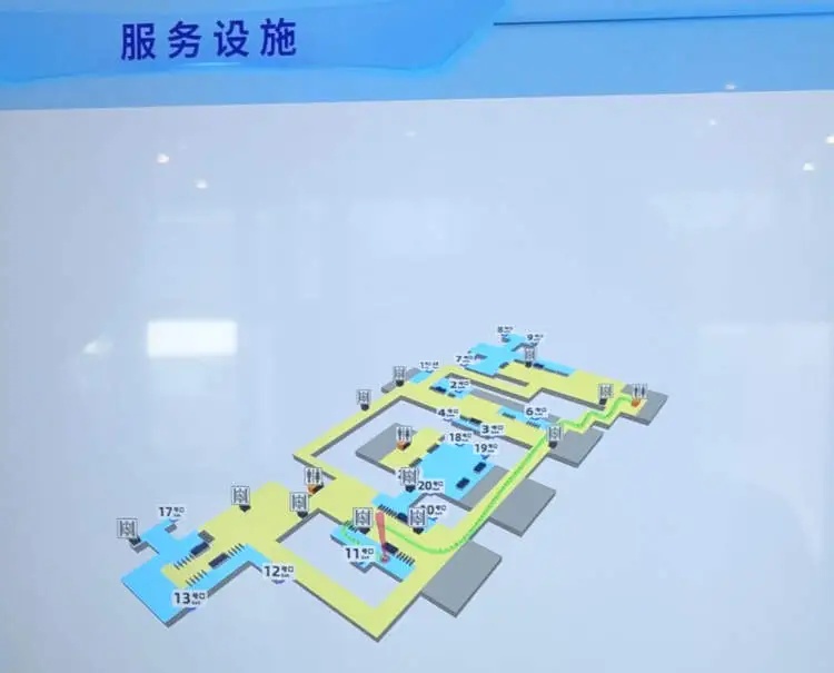 而三处自助查询机还有VR实景导航功能,不仅能更清晰地指路,还会展示卫生间、无障碍电梯位置。