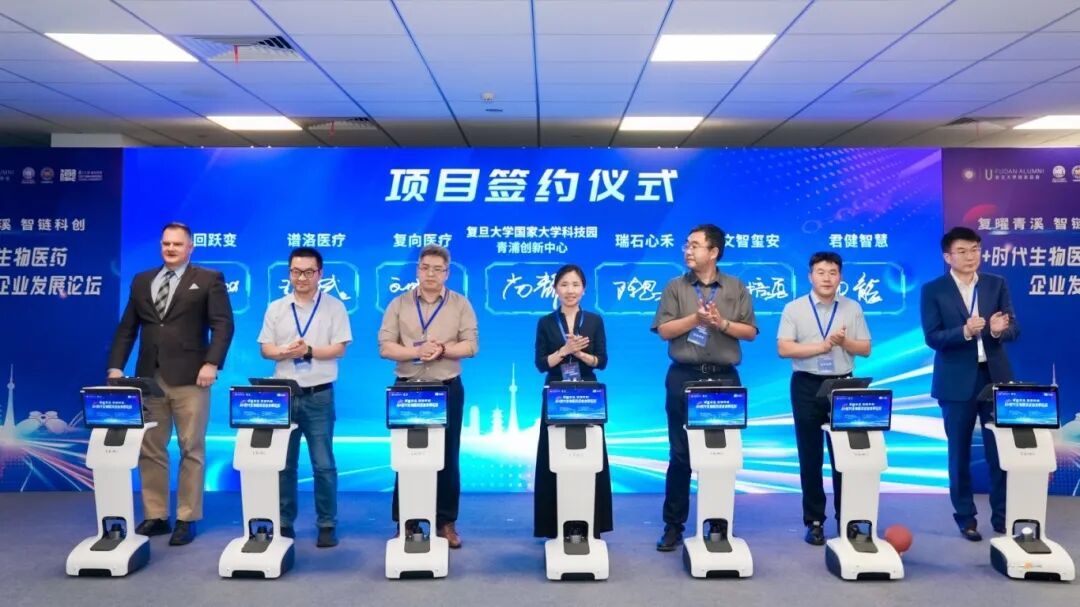 向高处谋,谱奏校地合作新典范 复旦大学与青浦区正加速合作,共同打造从科研到产业的全链条创新体系。双方希望通过此次论坛,将更多高水平的AI与生物医药融合项目引入青浦,探索可复制、可推广的合作新模式,服务区域经济发展。 青浦区正全面加快与复旦大学的合作步伐,为项目落地提供了肥沃土壤。今年,复旦大学国家大学科技园(青浦创新中心)和复旦大学(虹桥)全球校友科创中心先后启用,为全球复旦系科创力量提供了重要支点。 向深处研,把脉时代发展新趋势 本次活动特别举办“国际生物医药领导企业的发展之道”圆桌讨论,来自上海市生物医药行业协会、德同资本、中金资本、火山石投资、复星医药及德睿智药等单位的专家代表围绕主题,畅聊AI+时代下生物医药企业创新发展之路。嘉宾们表示,AI技术在生物医药领域展现出巨大潜力,但在实际应用中仍面临数据质量不高、算法模型不够成熟、跨学科人才短缺等挑战。金融作为技术创新重要的源头活水,金融机构更应在新形势中挺膺担当、有所作为,以“金融活水”哺育“创新幼苗”,勠力同心推进科研成果转化、科创项目成长、科技产业壮大。 向实处走,开启产业蝶变新篇章 脑机接口、超声治疗、核医学影像等六个不同领域的前沿公司代表在活动上集中签约并举行项目路演。这些项目既代表着复旦在生物医药创新领域的新探索,也契合着青浦区产业体制升级的新需求。路演活动中,项目方代表与十数家投资机构充分交流,从技术研发、产业化、商业化等方面进行了详尽的沟通。企业家们纷纷表示,在合作推进过程中,得到了学校、政府、资本等多方面资源的支持,相信落地后一定能加速蝶变,成为新质生产力的标杆。 本次“AI+时代生物医药企业发展论坛”将更好链接复旦与青浦的优势禀赋,不断突破学科之界、校地之界、时空之界,以创新之名,赴时代之约,推动更多复旦科学家,更多硬科技企业、产业项目与青浦携手,共赴长三角创新枢纽建设的新征程!