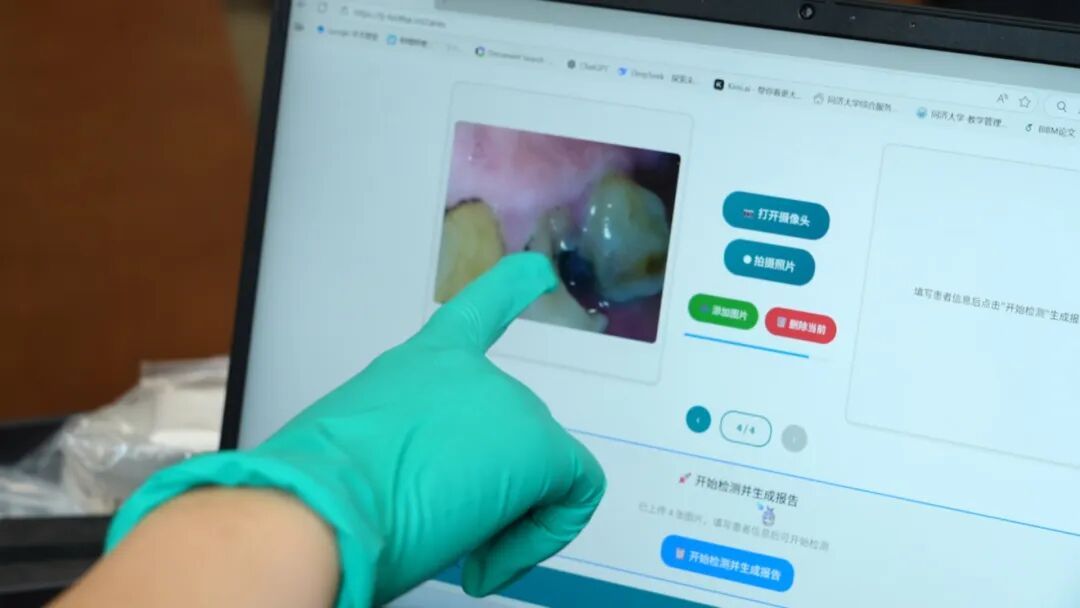 “我们以口腔医学院附属医院40余年诊疗经验为临床依据,依托3000余例口腔病例数据构建训练库,通过优化大模型数据处理算法,强化多源信息协同分析、个性化需求适配能力,可依托便携式设备如手机、口腔内窥镜等快速识别口腔问题并输出诊疗报告。”周珂帆表示,目前该系统的口腔疾病综合检测准确率已达93.4%,患者整体就诊时间缩短58%,可精准补上部分地区“缺牙医、资源散、诊疗慢”的短板,为基层口腔健康提供关键技术支撑。