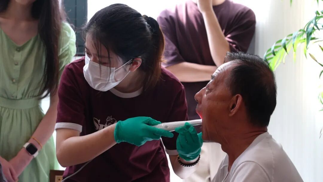 “与传统的检查方式不同,这套系统搭载了内窥镜设备,借助我们团队自主设计开发的算法和AI技术,能实现微小情况看得更清、疑难病灶定位更准、实时检测速度更快。仅需几十秒便能生成涵盖牙周状况、龋齿风险及就医指引的报告,让老人在社区内就享受到专业口腔评估。”团队成员李祎娜介绍说。