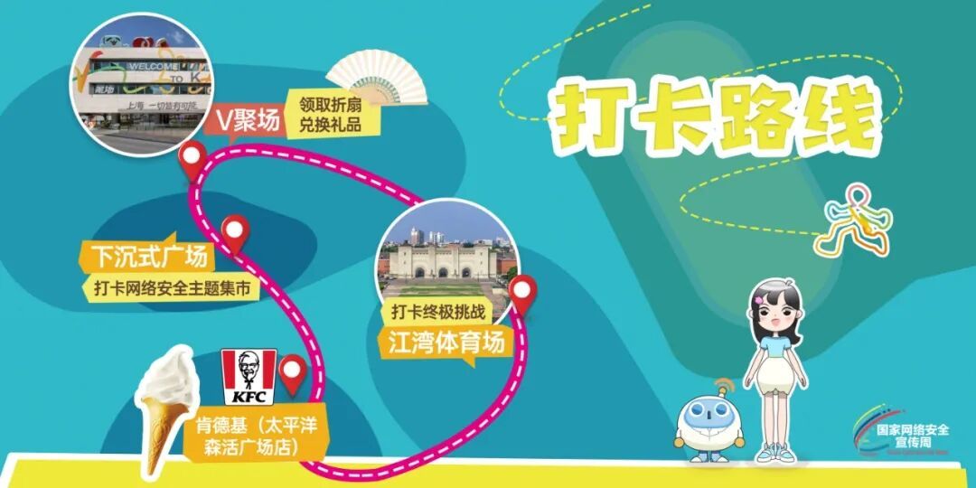 在“反诈警示区”,通过模拟常见网络诈骗手法,帮助市民识别钓鱼链接、虚假客服和刷单诈骗等陷阱,强化“不轻信、不转账、多核实”的防范意识。“个人信息保护区”则通过互动问答、案例解析等形式,揭示个人信息泄露的风险与危害,倡导谨慎授权、定期修改密码、关闭非必要权限等良好习惯。“数据安全讲解区”则通过可视化演示,展现数据泄露和网络攻击可能带来的严重后果,引导公众在使用云存储、公共Wi-Fi等场景中提高警惕,采用加密、双因子认证等技术手段加强防护。今年,杨浦区还联合肯德基,打造了杨浦第五家网络安全主题餐厅,餐厅通过卡通海报、桌贴等,以青少年喜爱的方式传递网络安全硬核知识。