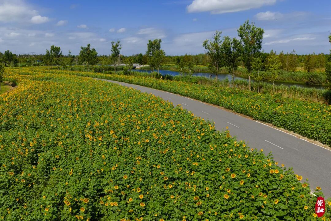 据介绍,向日葵是园区主打的景区特色之一,一年栽种两茬,夏秋盛放。园区种植时多点位分布于湖畔路边、高坡之上,以让游客可以花海穿行。未来园区将继续引进适宜的新品种,让游客享受更丰富多样的花海美景。