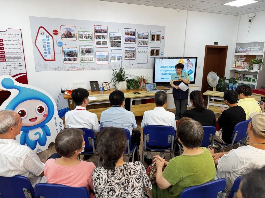 颐家(上海)医疗养老服务公司的工作人员为居民讲课