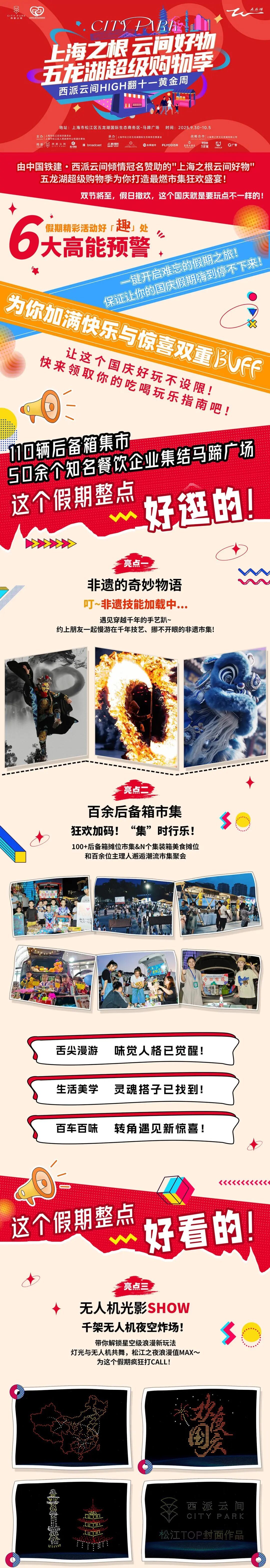 9月30日至10月5日,由中国铁建·西派云间冠名赞助的“上海之根云间好物”五龙湖超级购物季,将带来一场市集狂欢!