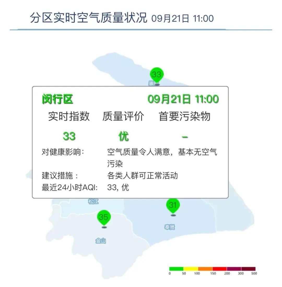 闵行区AQI为33,优,