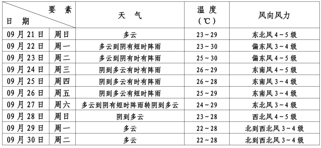 本区未来十天天气预报