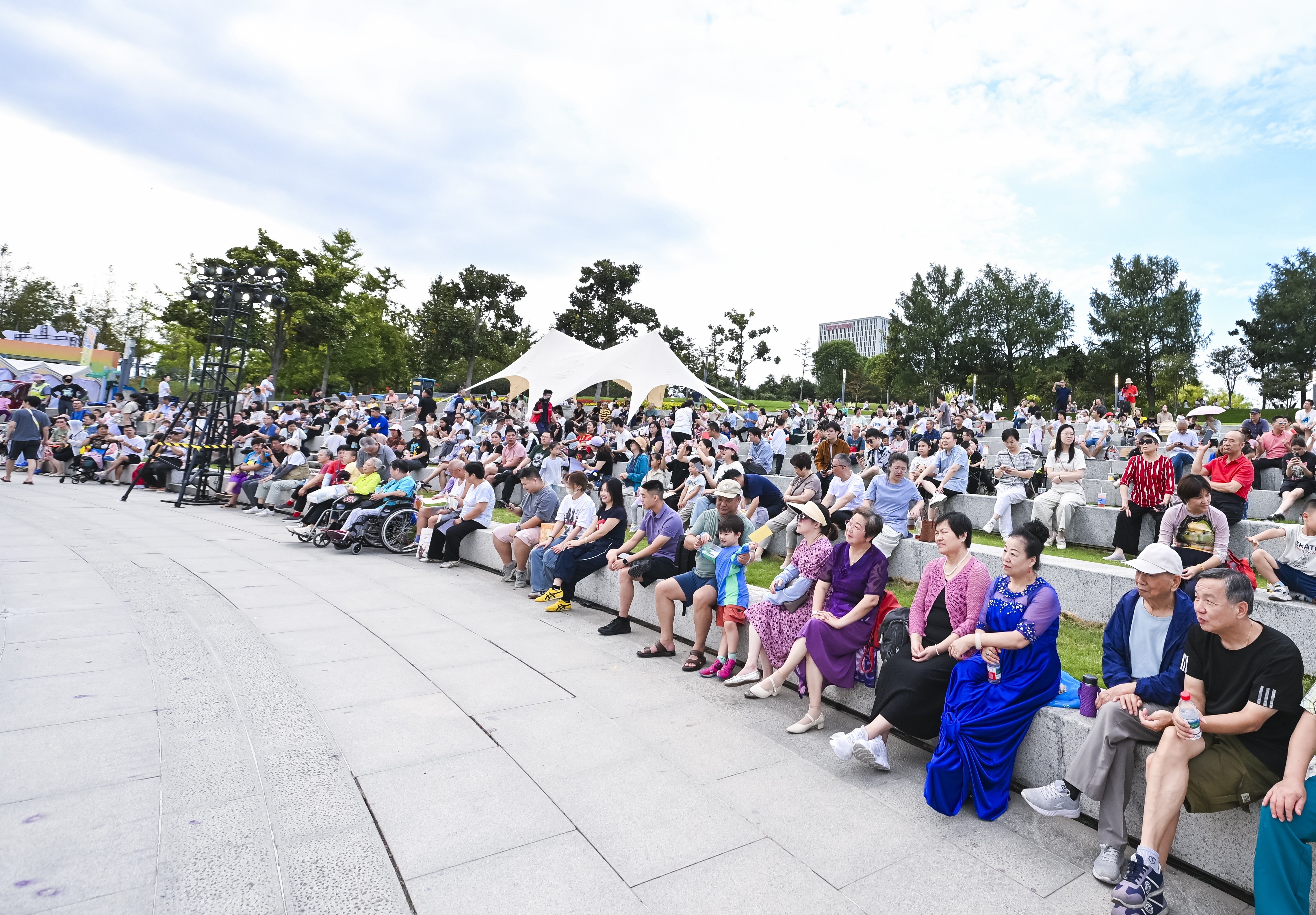 傍晚时分,逐光大合唱精彩开启。loveradio金曲争霸赛选手与民间歌唱爱好者组成的领唱团轮番登台,经典歌曲伴着乐队伴奏响起,现场大屏同步滚动歌词,市民跟唱不断。随后,无人机表演点亮夜空,与悠扬音乐交织成绝美画面,将氛围推向高潮。