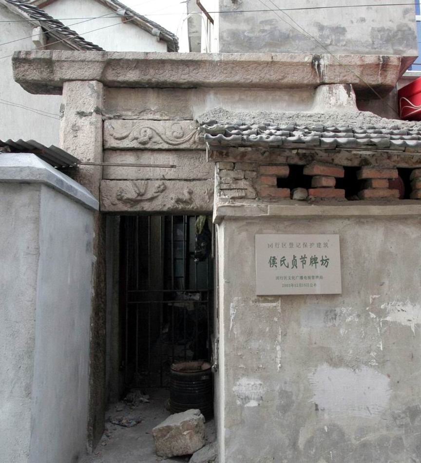 这座贞节牌坊能够长年“屹屹峙江村”,被乡人尊称为“贞石”。贞石,意思是坚石,亦作碑石的美称,理当倍加珍惜。因此,除了饱受风雨侵袭,始终未曾受到人为的破坏,后人在此建造新楼时也未曾拆除,只是不伦不类地嵌在砖墙之间。被列为闵行区文物保护点之后,这“贞石”幸存至今。