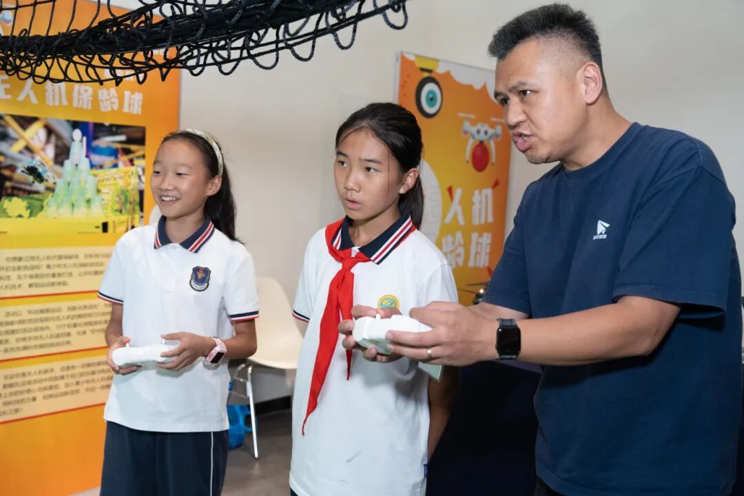 在机甲大师对抗区,孩子们专注地操控机器人,完成快速移动和精准射击;匠心手工坊内,艾草的清香伴随着孩子们的欢声笑语,他们正亲手制作植物养生锤和艾草薄荷膏;在无人机保龄球体验区,小选手们凝神操控无人机向前飞行,精准撞击排列整齐的水杯,场面热烈。