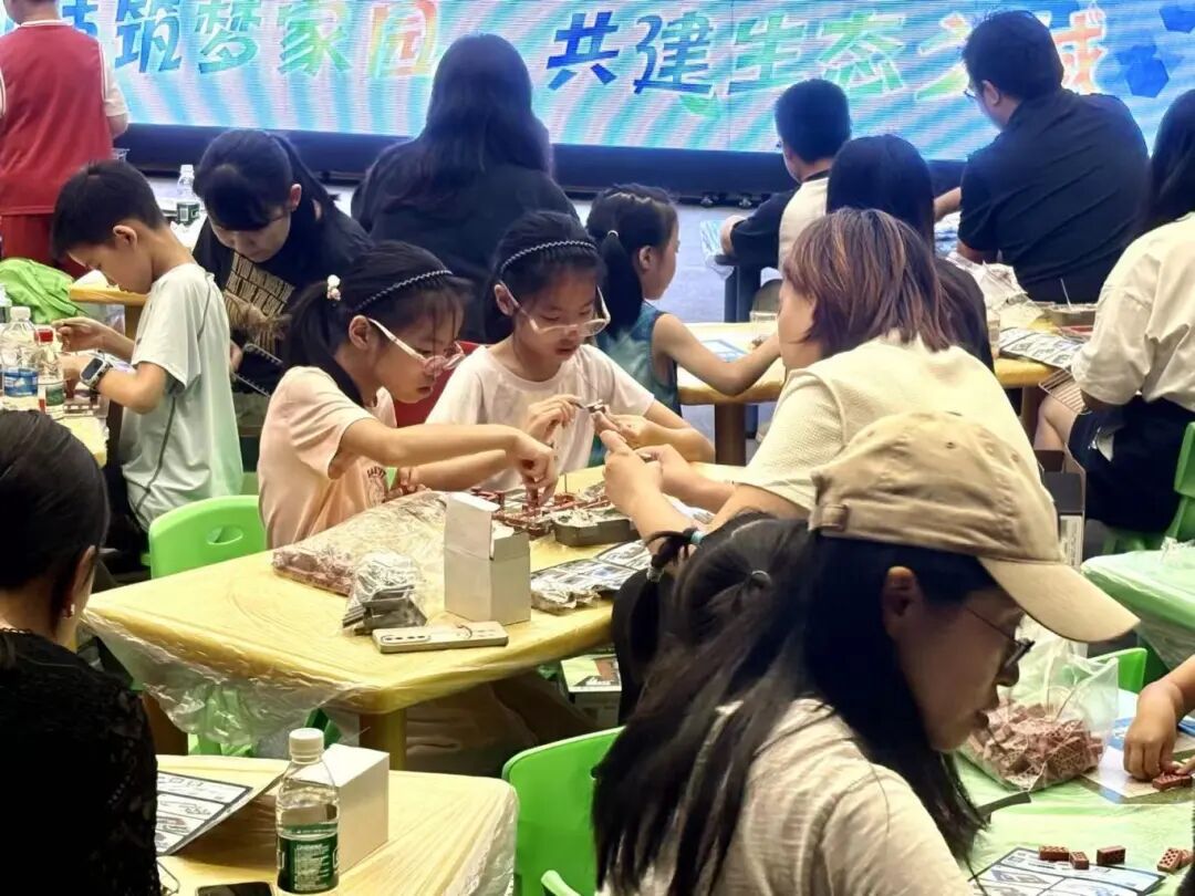 9月20日下午,第十一届上海国际自然保护周虹口区活动接力开展。50组亲子家庭化身为"环保建筑师",迷你砖块有序堆叠,植物基环保水泥填补缝隙,不一会儿一幢幢小房子就有模有样地"诞生"了。