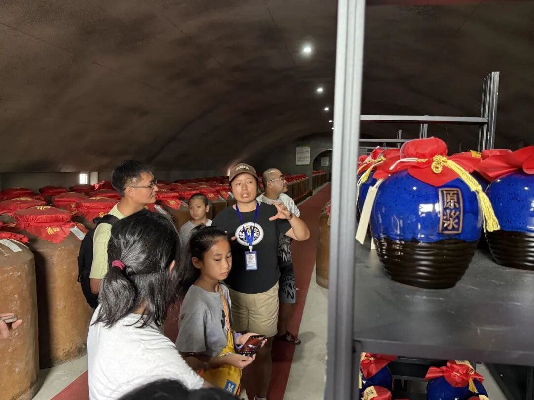 在讲解员的带领下,亲子家庭共同走进非遗展示馆、陶坛原酒库、海派浓香体验馆等酒文化展馆,深入了解传统酿酒技艺的历史文化与匠心精神。