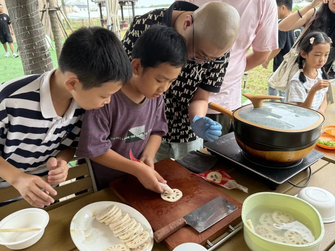 活动还特邀本地厨艺达人,为大家带来了一堂生动有趣的食育课。老师细致讲解莲藕的营养价值与多种做法,现场演示如何将“淤泥中的珍宝”变成一道道美味佳肴。
