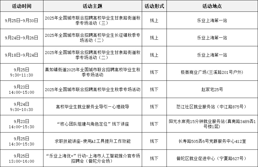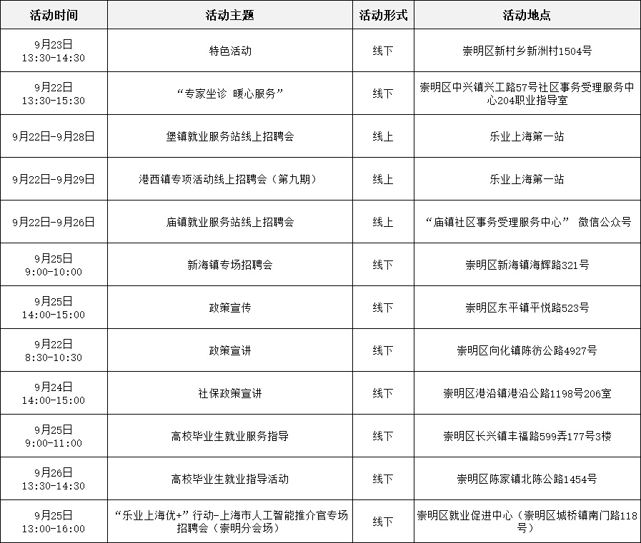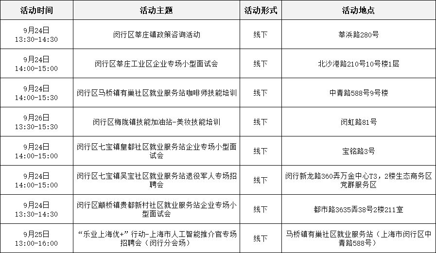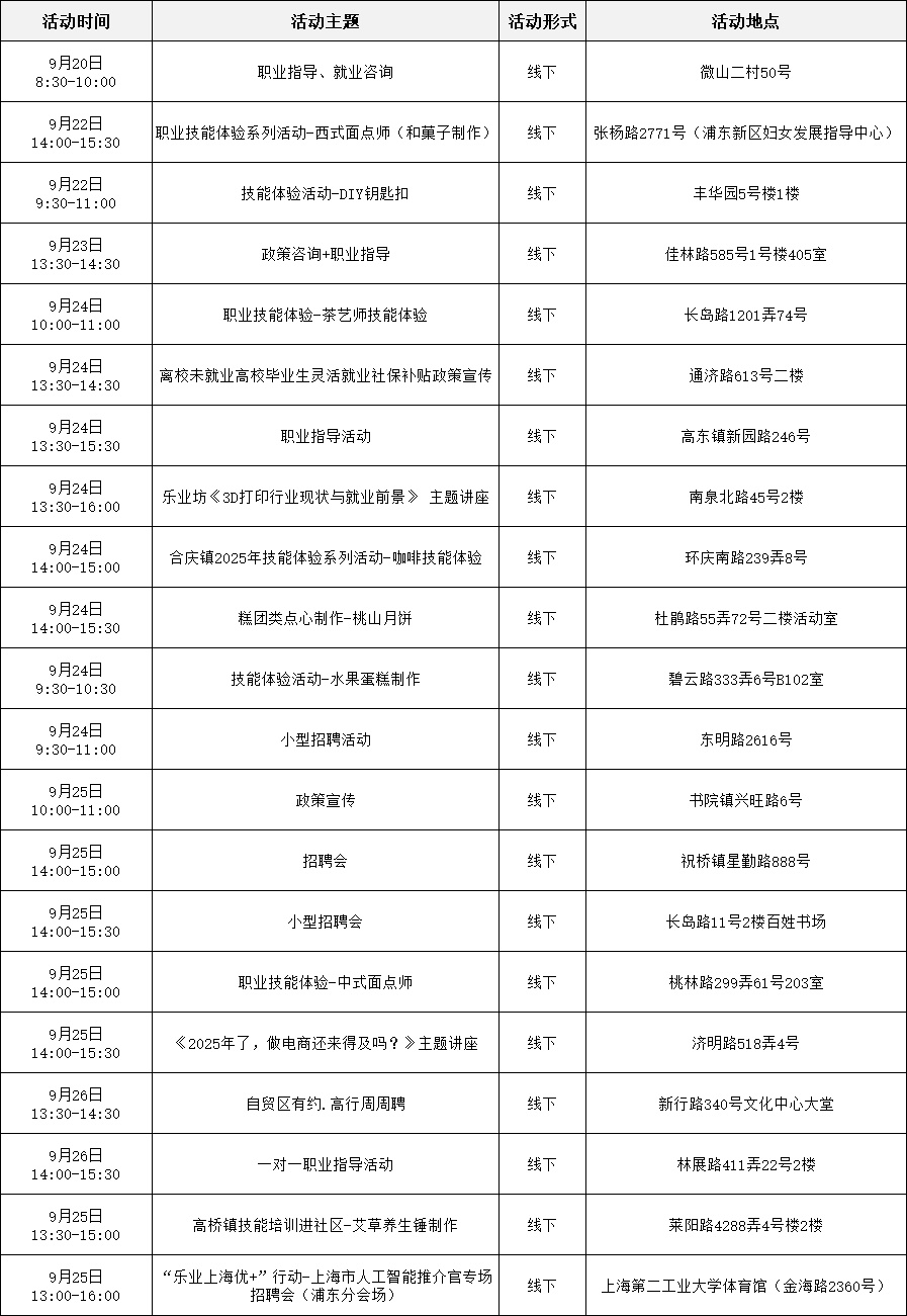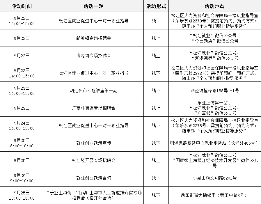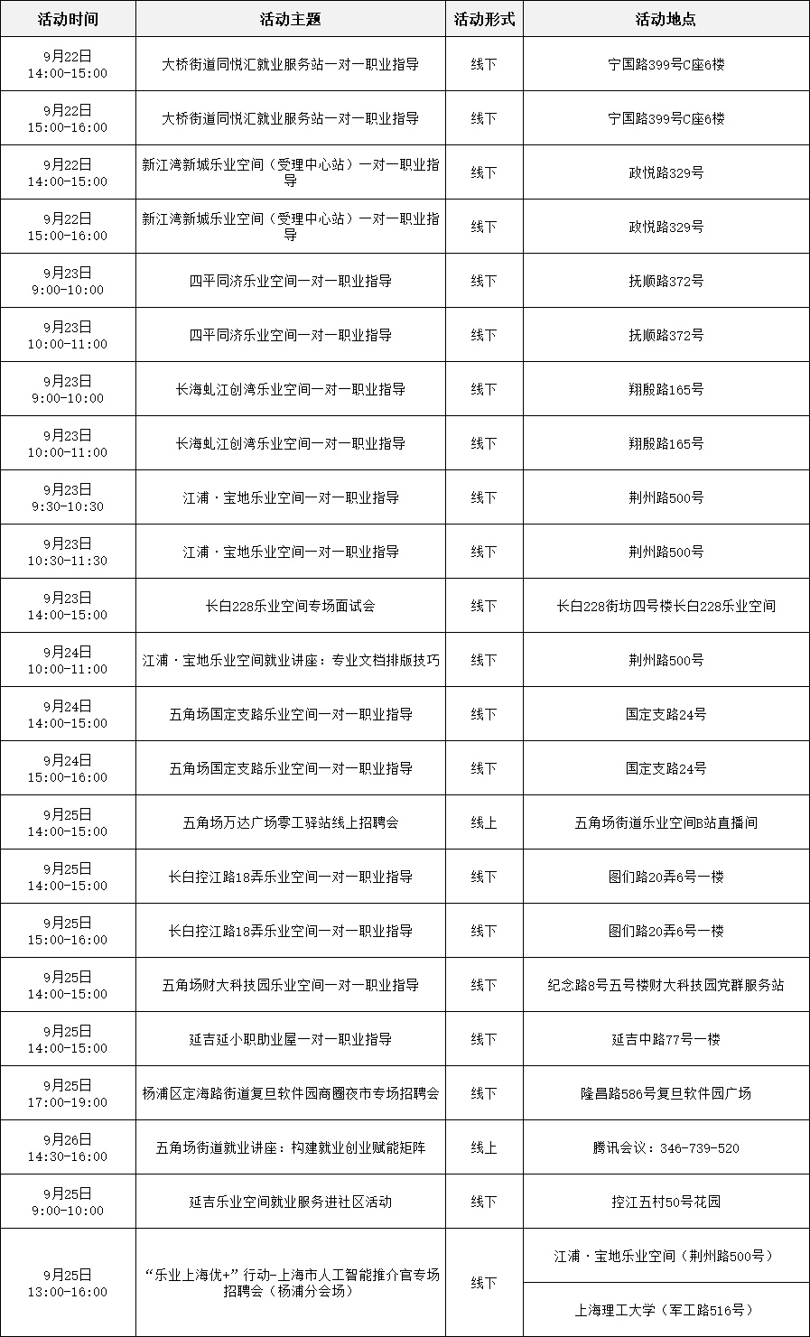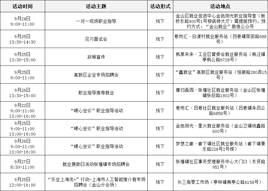 本次活动邀请上海弘盛特种阀门制造股份有限公司、宝胜(上海)线缆科技有限公司、特百佳动力科技股份有限公司等15家优质企业参加,提供技术研发、生产制造、市场营销、行政管理等多个就业岗位,满足不同层次、不同专业求职者的就业需求。活动现场同步设置职业指导、创业指导服务专区,特别邀请行业专家和职业指导师为求职者提供职业方向规划、应聘能力提升、创业政策咨询等精细化、个性化公共就业创业服务。