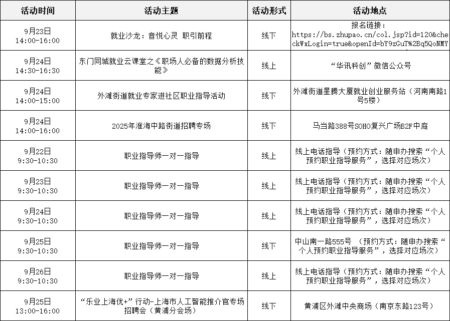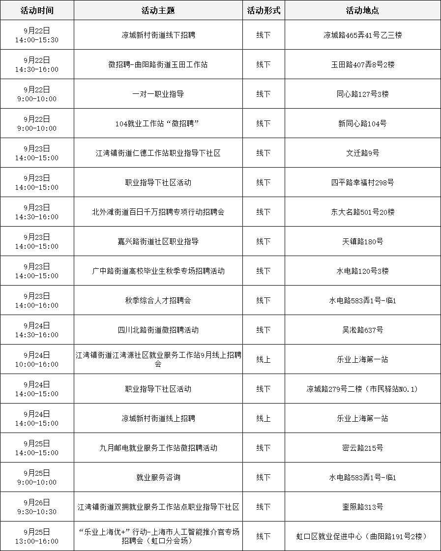 招聘会邀请上海道隐文化传媒有限公司、上海宏智人才服务有限公司、上海虹口人力资源有限公司等公司参加,提供销售、技术人员、财务人员、会计等岗位。活动现场同时设立职业指导、创业指导服务专区,邀请职业指导师为求职者提供职业方向规划、应聘能力提升、创业政策咨询等精细化公共就业创业指导服务。