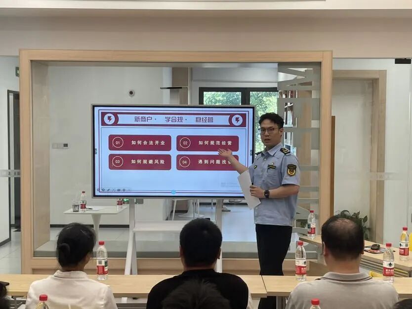 近日,首期“开业第一课”在月浦镇友间公寓党群服务中心正式启动,现场座无虚席。来自市场监管、城管执法、城建中心等多个职能部门的业务骨干组成服务团队,为现场数十家新开业的小微商户带来了一场实用、生动、接地气的政策培训。 月浦镇第二综合网格副召集人说:“ 月浦镇对标宝山区‘街区制’改革要求,聚焦基层治理中‘大企业服务强、小商户支持弱’的结构性短板,精心筹备此次的‘开业第一课’服务品牌。我们希望以此次活动为契机,将服务触角延伸至基层治理末梢,让‘法律条文’化作商户案头的《操作指南》,推动政策精准落地,主动靠前服务。” 餐饮店经营者说:“第一次在外面开店比较麻烦,办证不知道头绪,经过他们的培训,我懂得了流程,办起来也比较便捷了。” 此次课程内容覆盖“政策合规、经营规范、服务支持”等模块,并结合案例解析、互动答疑提升小微商户参与度。 同时,授课现场还向商户发放了《开业大礼包》,其中不仅有各类办事指南、时间表,还有分类贴、公示卡等实用物料,被称为“开店百宝箱”。