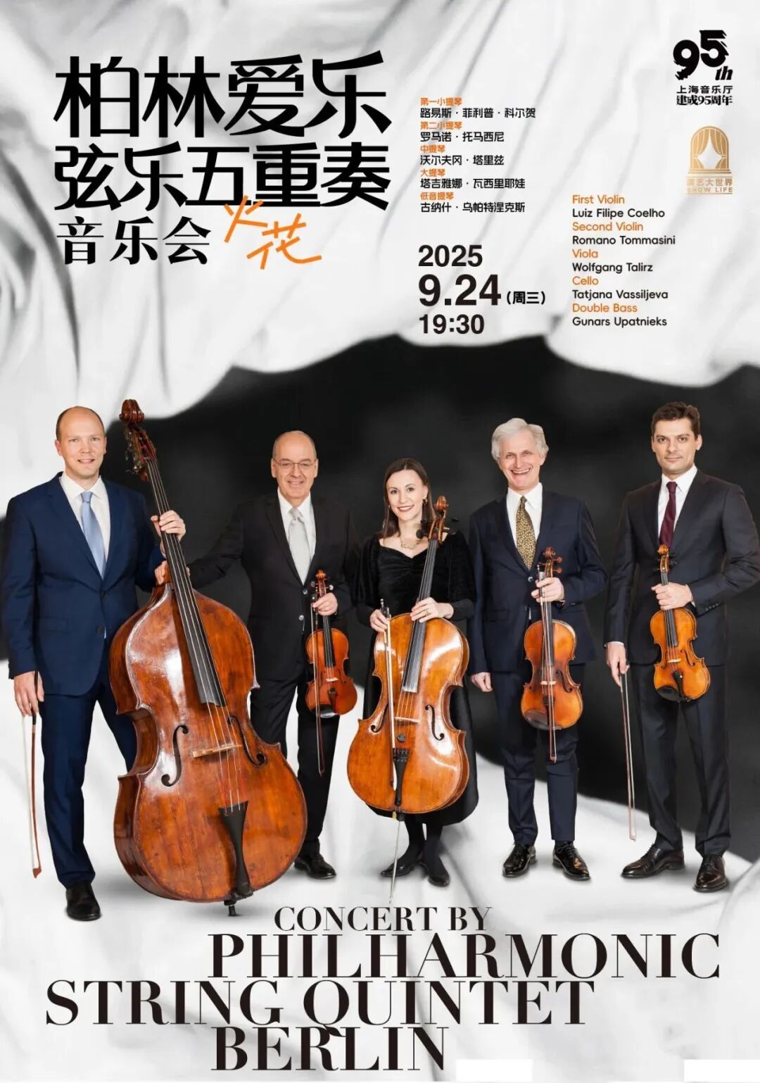 蜚声国际的柏林爱乐弦乐五重奏将再次登上音乐厅的舞台,这支由柏林爱乐乐团现任及前任顶尖演奏家组成的室内乐组合匠心编排为沪上乐迷打造殿堂级视听盛宴,曲目既有德沃夏克《降E大调第三弦乐五重奏》、帕格尼尼《钟》等经典佳作,更惊喜演绎伯恩斯坦《西区故事》与摇滚经典《紫色迷雾》等作品。