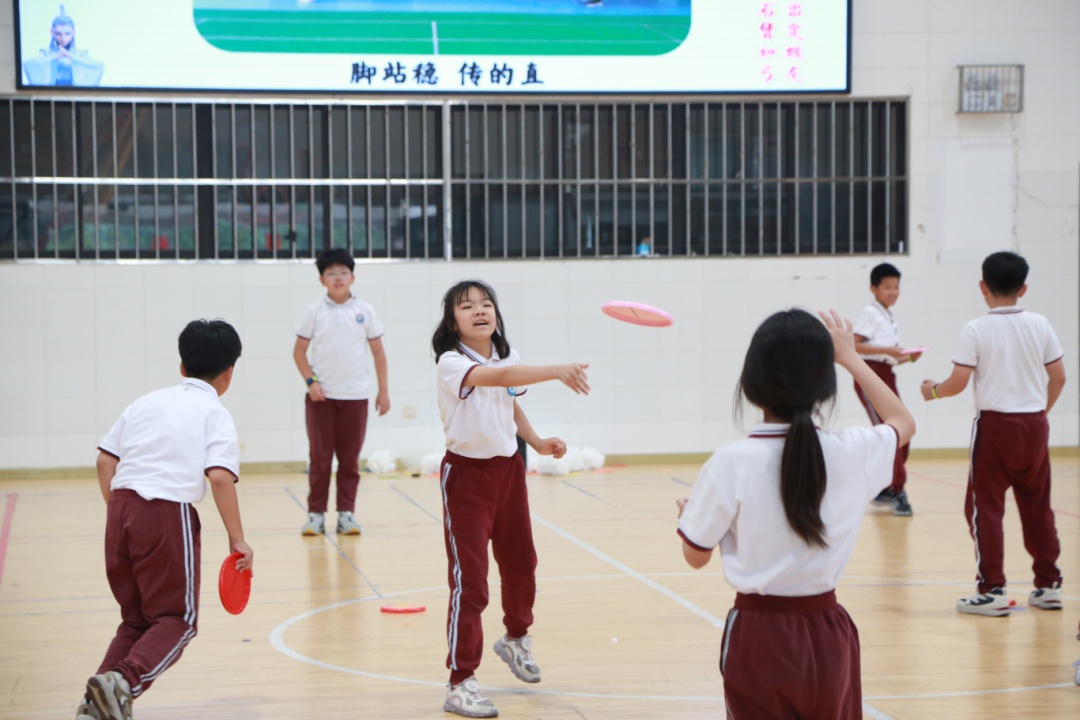 飞盘运动没有裁判,出现争议由场上队员自己协商解决,极大地培养了孩子们的诚信、自律和解决冲突的能力,是非常生动的品德教育。“玩飞盘也不是傻跑,需要战术,我会引导孩子们小组讨论如何跑位和传接,锻炼他们的空间感知、瞬间决策和团队协作的智慧。飞盘的跑、跳、投掷全面锻炼了孩子的身体素质,尤其是协调性和灵敏性。比赛中,流畅的传接配合、队友间的眼神鼓励和交流,以及赛后双方相互致意的仪式,都蕴含着团结、尊重与礼仪之美,成为体育与美育结合的生动实践。”迟显超表示。
