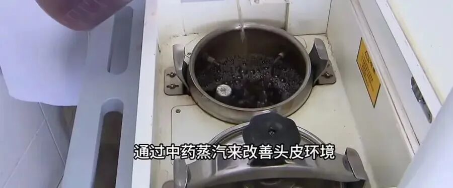 用类似理发店的头罩,装满中药蒸汽裹住头皮,暖暖的蒸汽带着药香,像给头皮做了一场深层养护。