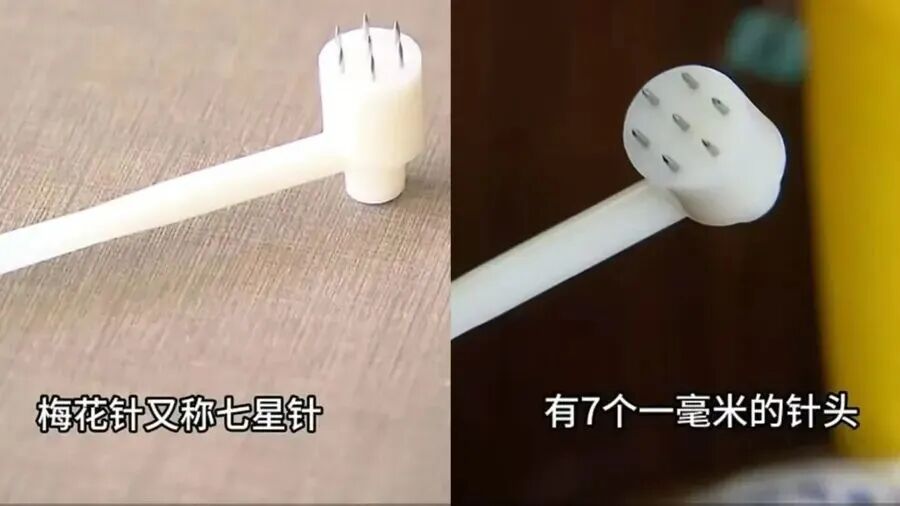 梅花针要练到每分钟150-180次叩击,针尖垂直头皮还不划伤。力度是头皮微微出血,可以刺激毛囊。