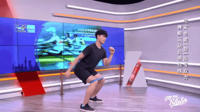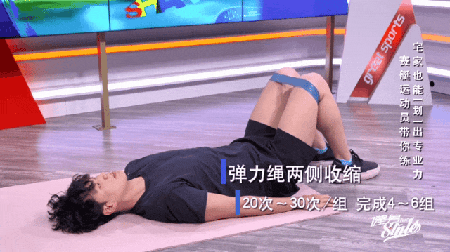 找一根稍长的弹力绳,将弹力绳套在脚上,腰要坐直,挺胸抬头。拉桨的过程中,肘关节向两侧打开,是拉快回慢的节奏。60-80次/组,完成4-6组。如果之前从事过赛艇运动,建议在50次/组;如果是新手小白,建议在20次/组。