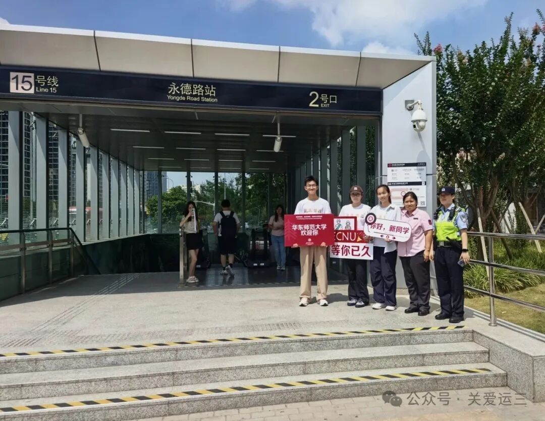 近日来,上海交通大学与华东师范大学陆续迎来本科与研究生新生报到。 位于交通大学校区东侧的15号线紫竹高新区站和西侧的5号线东川路站,犹如张开双臂,将东西横跨的交大校园“环抱”其中;而15号线永德路站毗邻华东师范大学闵行校区,三站同步开启新一季的迎新服务,共同守护莘莘学子的求学之路。 为助力新生与家长高效、顺畅抵校,15号线紫竹高新站区提前部署、积极响应,以细致贴心的服务温暖学子们的“第一程大学路”。 在5号线东川路站,一套周密的多级引导机制已全面启动。 站内,车站工作人员主动迎前,以清晰指引和温暖微笑将新生接引至站厅,再无缝对接至站外高校引导员。 站外,高校引导员们身着醒目服装、手持引导牌准时接应,一路陪伴新生行至短驳车点,实现从站台到短驳车的“无忧衔接”。 15号线紫竹高新区站和永德路站也全面做好高校引导员的后勤保障工作,为他们提供饮水、如厕等便利。 针对携带大件行李的新生,车站工作人员主动协助搬运、引导出站,确保通行安全。 此外,车站还加强了对售票机、闸机、扶梯等重点设备的巡检频次,全力保障大客流期间运营平稳有序。 新的征程,地铁相伴 用行动诠释“服务至上”,以热忱书写城市温度——上海地铁以多年如一的迎新协作,体现了对学子成长的深切关怀,也彰显出作为城市公共交通骨干的担当与力量。