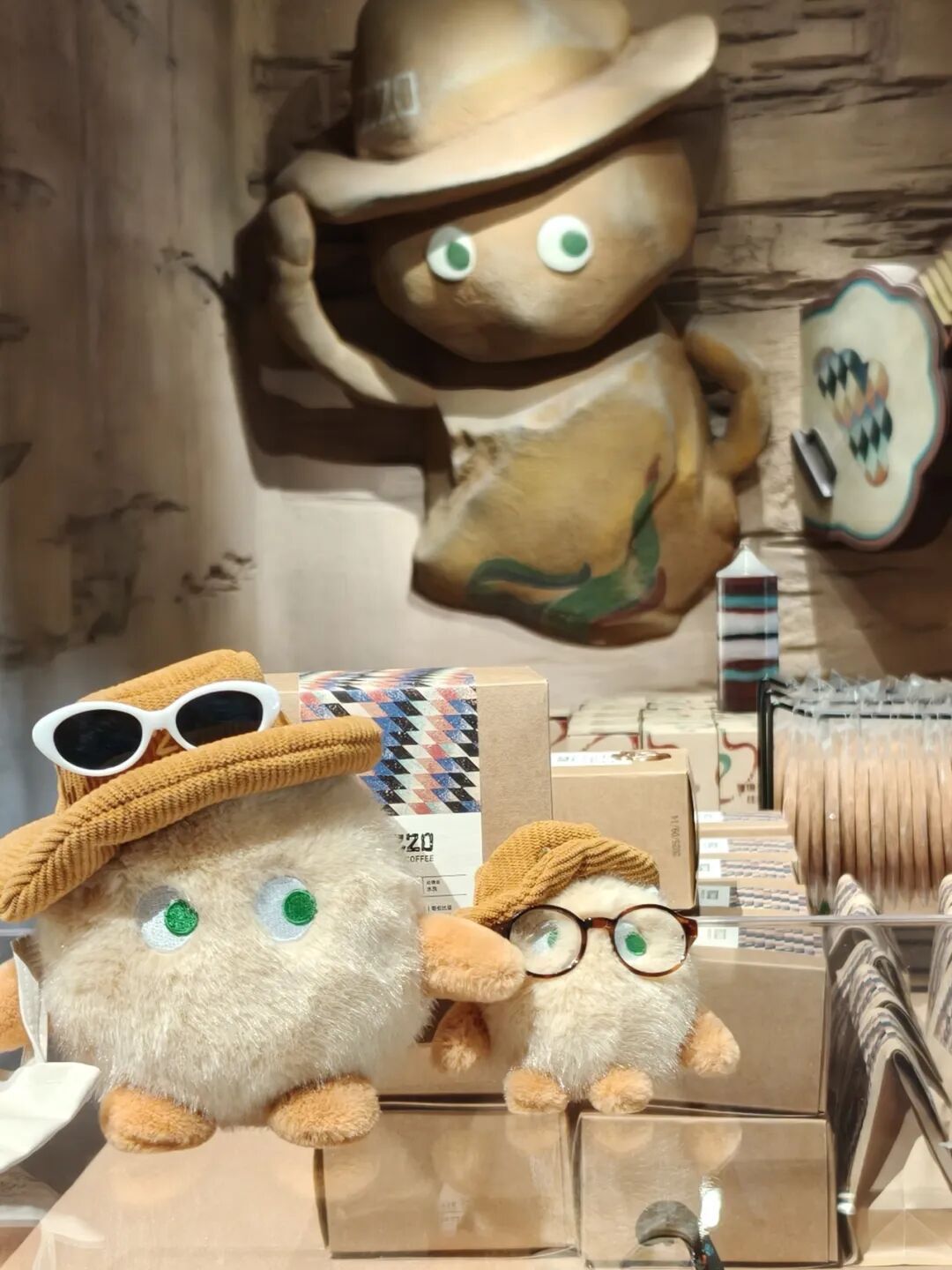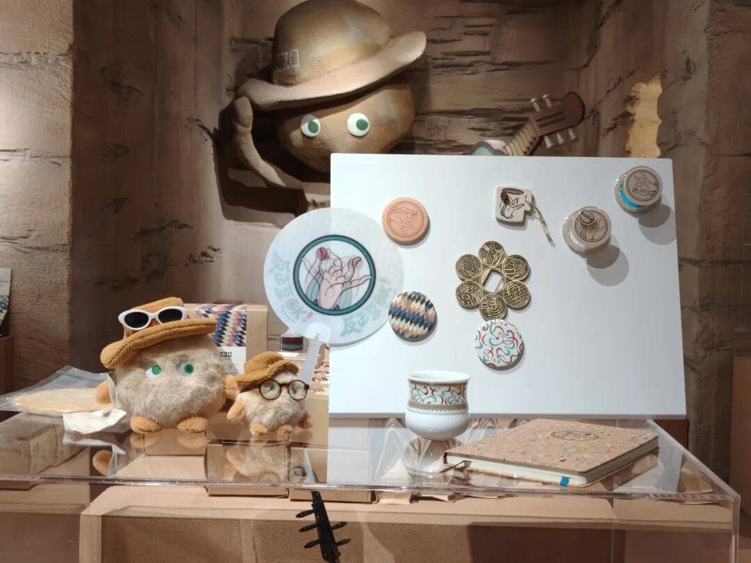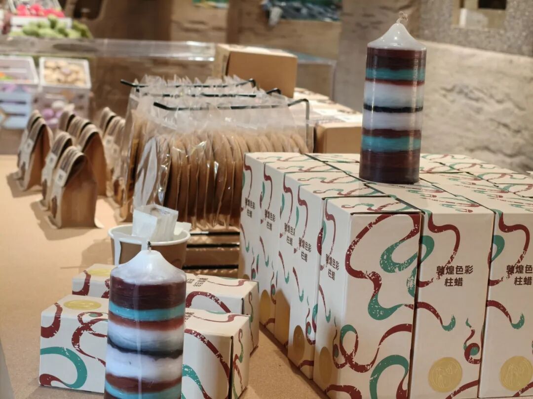 更有本次快闪的创意限定——提取敦煌莫高窟部分元素作为灵感设计的咖啡杯、蜡烛、冰箱贴、笔记本、丝巾、帆布包、饼干、盲盒……以及即将到货的超萌“石敦敦”玩偶!