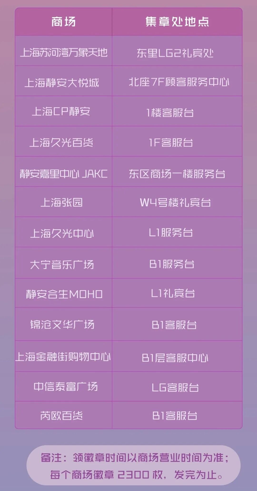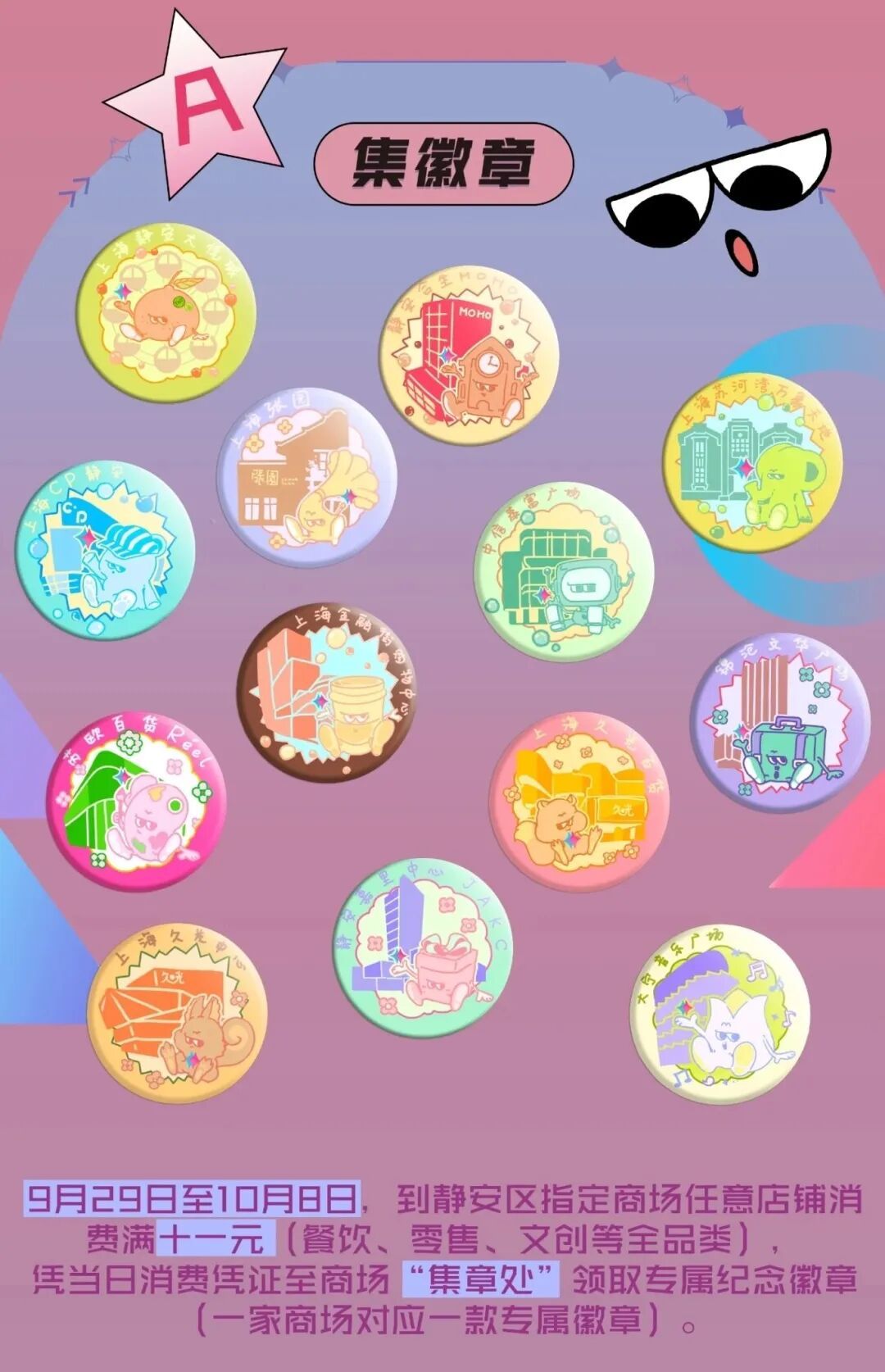 在指定商场内任意消费十一元,即可领取专属纽扣徽章一枚。