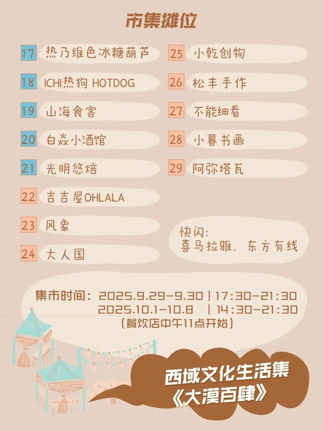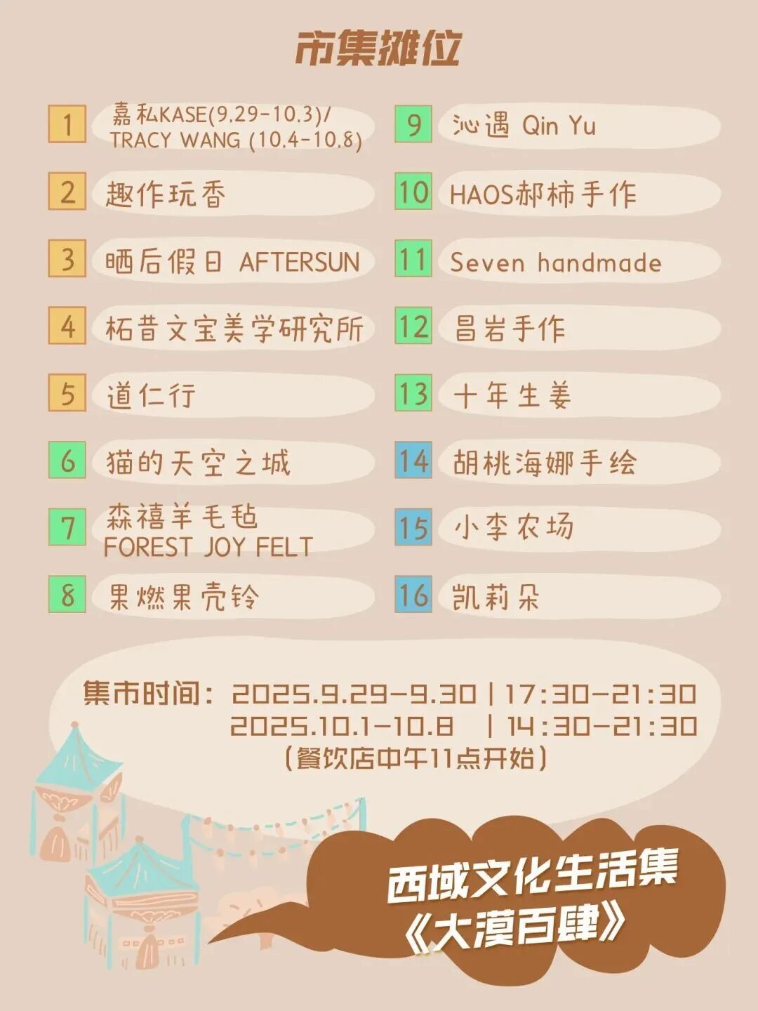 当大漠的风吹到上海,一场“行走的西域史诗”将在静安公园内上演!在《大漠百肆》边塞主题市集从“嗅、味、触、视”四大维度,全方位激活你的感官——西域的异香、美食的甜蜜、手作的肌理、光影打造的西域氛围,每一处细节都让你沉浸式触摸丝绸之路的繁华盛景。