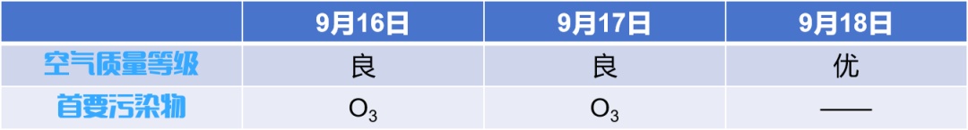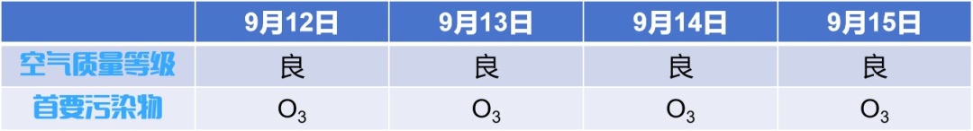9月12日至9月18日徐汇区空气质量等级及主要污染物: