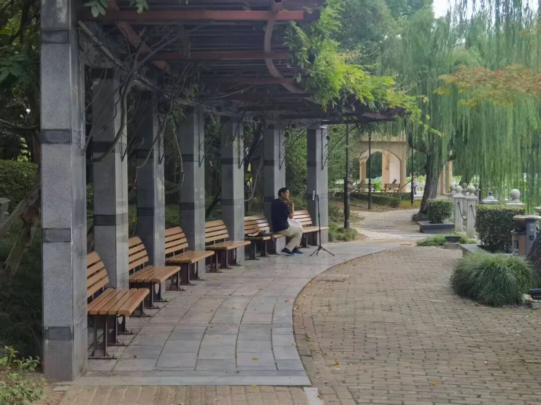上午9点,走在街头,气温依旧凉爽,但阳光直射处仍有些许灼热感,不少市民穿上了防晒衣并戴了遮阳帽。思贤公园里,树叶开始泛黄红色,大片荷叶傲立湖畔。水中央还有不少水鸟游弋,有市民在岸边垂钓、练习乐器或是在阴凉处纳凉,十分惬意。“我们几乎每天都要来,感觉这两天有点凉意,不冷不热,挺好的。”市民张先生说。