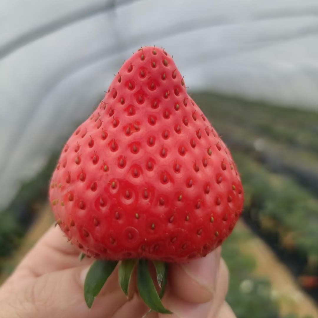 比经典品种“红颜”早一个月抢鲜上市,一级序果单果重近28克,果肉紧实饱满,可溶性固形物含量最高达18.5%,一口下去满是浓甜果香,耐病性强,是农户眼中的“省心品种”,亩产可达1800-2200千克,红色果面泛着莹润光泽,宛如红宝石缀在绿叶间。