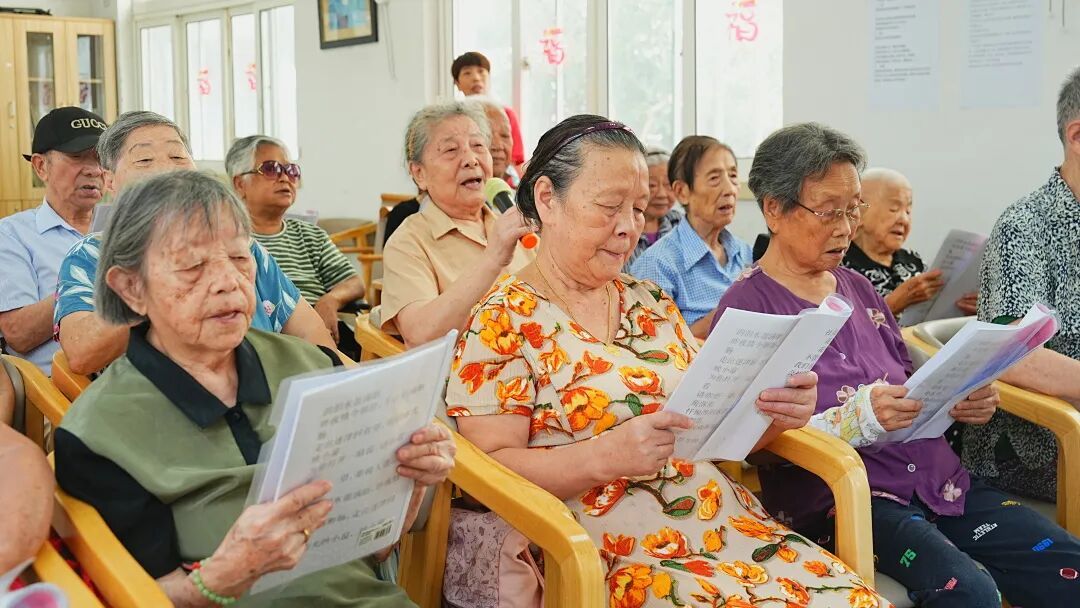 与传统义诊不同,欣益养老院的活动现场还充满了欢声笑语。这边“画钟测试”刚结束,那边高龄老人唱歌比赛就拉开了帷幕。六位平均年龄超过85岁的老人组成一队,唱起了记忆中的老歌。平日里表情不多、言语较少的老人,在熟悉的旋律中,脸上露出了久违的笑容。