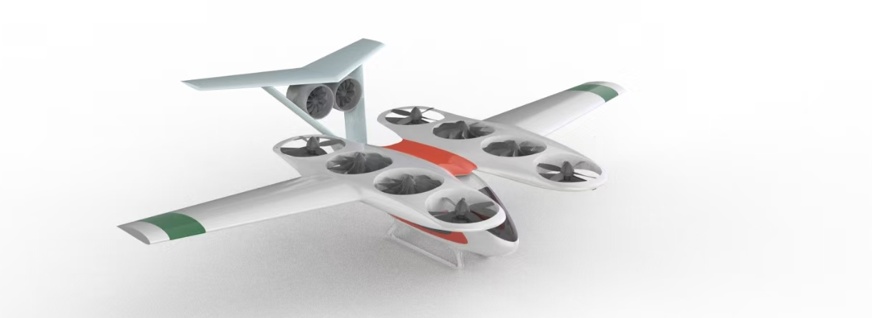 项目亮点:自主研发的2吨级载人电动垂直起降飞行器,可乘坐5人,最大载重700公斤,航程250km,巡航速度200km/h。