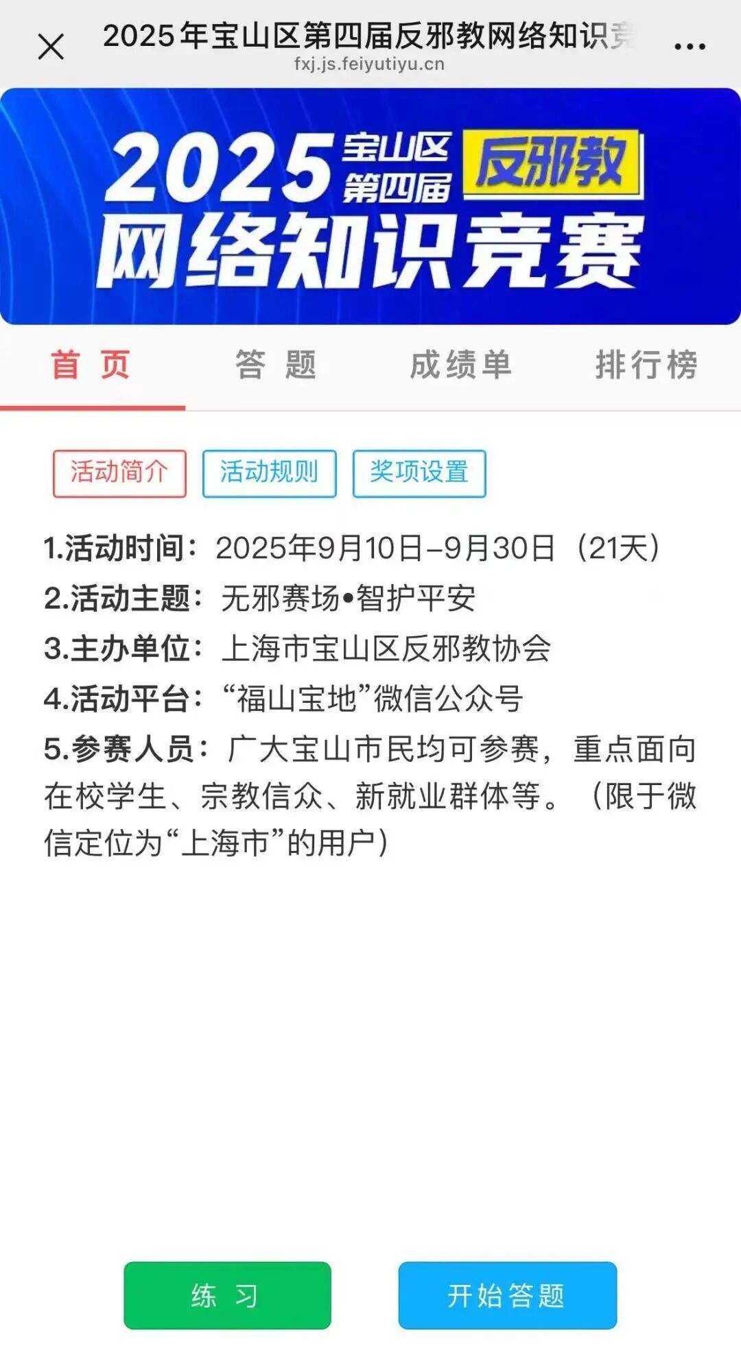作为反邪教宣传的地区特色项目,上海市宝山区反邪教网络知识竞赛已经连续举办三年。三年来,广大市民通过网络实现了对反邪教知识的便捷学习,参与竞赛更是加深了对反邪教知识的理解吸纳。可以说,参加知识竞赛,不仅是一次对反邪知识的全面检验,更是一次提升自我、守护安全的成长之旅。