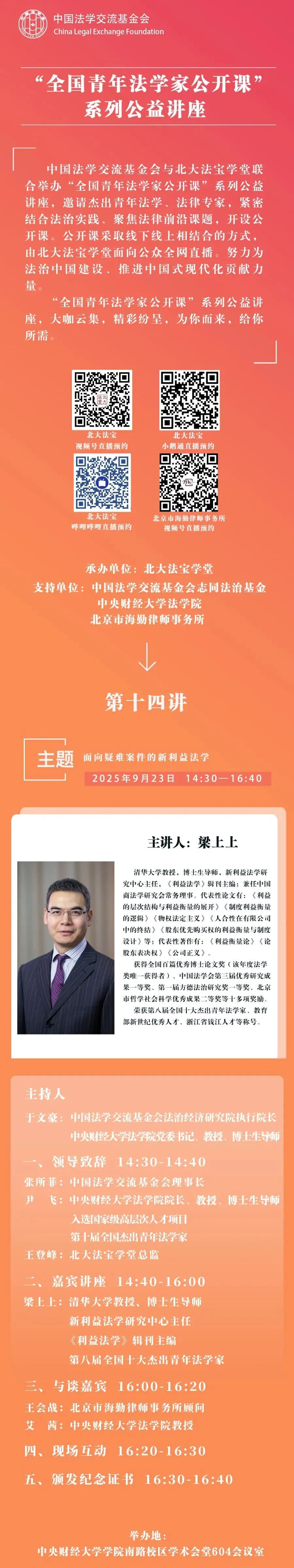 预告|梁上上教授主讲“全国青年法学家公开课”系列公益讲座第十四讲