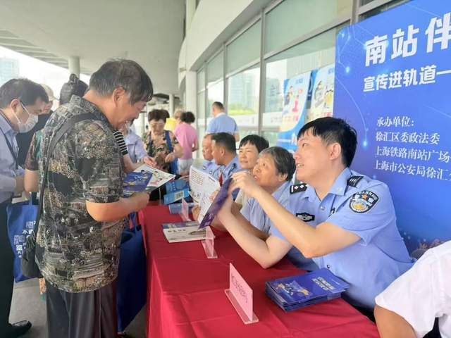 在2025年国家网络安全宣传周之际,徐汇区委政法委、徐汇公安分局反诈中心、上海铁路南站管委办、漕河泾街道办事处、铁路南站派出所、上海铁路南站治安派出所等多家单位携手,在上海铁路南站开展以“南站伴您行,反诈牢记心”为主题的反电信诈骗系列宣传活动。通过现场讲解、发放手册、互动答疑等形式,将反诈知识送进轨道交通枢纽,为往来旅客与周边居民筑牢网络安全防线,切实提升公众防范意识,守护市民财产安全。