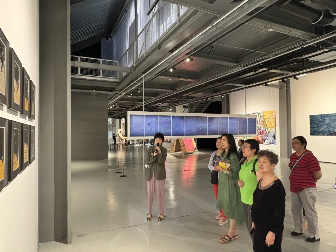 现场还有几位老人格外“赶场”,王阿姨就是其中之一。“我今天报了3个场馆的活动,早上9点去上海电影博物馆,11点赶去复兴艺术中心,下午又来星美术馆,一路赶得汗流浃背,差点迟到!”张阿姨擦了擦额头的汗,语气里却满是兴奋,“平时我们很少接触艺术,年轻时也没怎么接受过美术教育,自己来看展就是盲看,啥也看不懂。现在每个馆都有导览员带着讲,说清楚画里的门道,就有意思多了。导览结束后,我还能自己再慢慢逛,细细琢磨刚才没看明白的地方。”