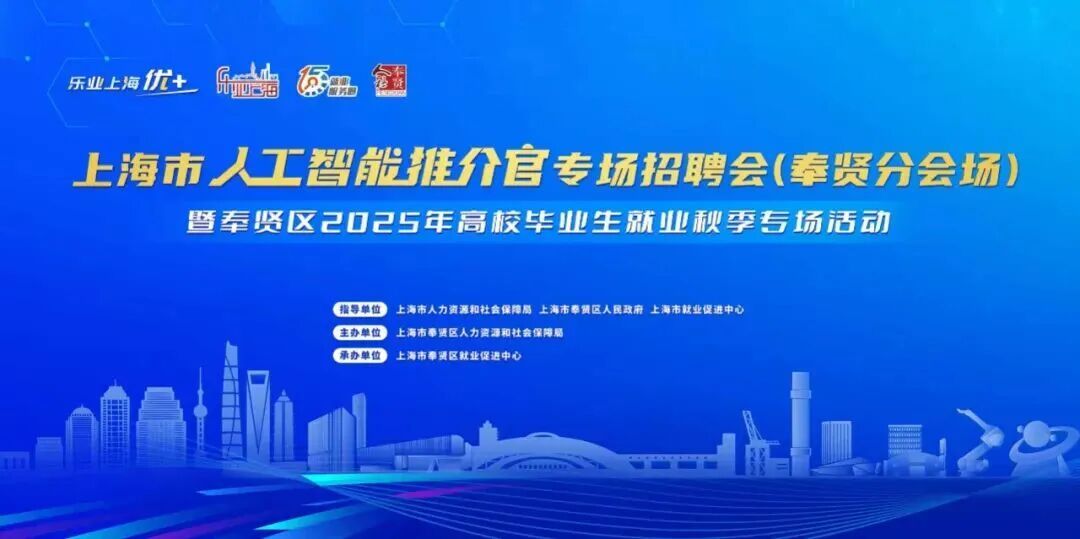 人工智能推介官 专场招聘会来了! 会上众多岗位+政策咨询 大家准备好展现自己了吗? 这场招聘会机遇满满,“就”等你来! 欢迎大家来参加! 为促进高校毕业生、失业青年等重点群体高质量充分就业,奉贤区人社局定于2025年9月25日举办“‘乐业上海优+’行动——上海市人工智能推介官专场招聘会(奉贤分会场)暨奉贤区2025年高校毕业生就业秋季专场活动”。 PART 01 组织机构 主办单位 上海市奉贤区人力资源和社会保障局 PART 02 活动时间 2025年9月25日(星期四) 13:00-16:00 PART 03 活动地址 奉贤区南桥镇古华庭 (奉贤区南桥镇解放中路276号1号楼一楼) PART 04 参会企业 (可放大查看) 向下滑动查看所有内容 PART 05 实习实践 (可放大查看) 向下滑动查看所有内容 PART 06 就业见习 (可放大查看) PART 07 精彩内容 6 视频连线 实景直播,同步市招聘会主会场 咨询专区 “人工智能推介官”宣介咨询 就业指导专家 创业指导专家 2025年9月25日(星期四)下午 古华庭1号楼一楼 不见不散!