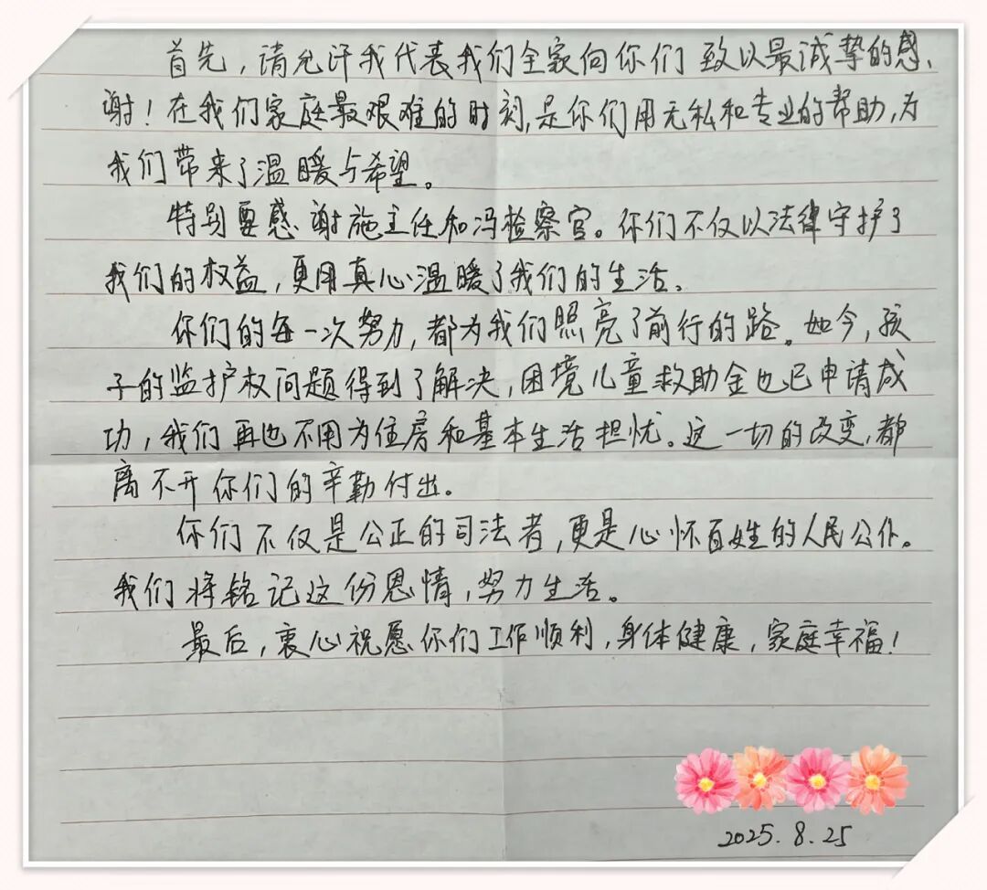 考虑到王女士需要照顾小杰及瘫痪在床的母亲,在证据收集等方面存在实际困难,“金港湾”团队积极开展民事支持起诉工作,帮助固定证据、指导提起诉讼等。