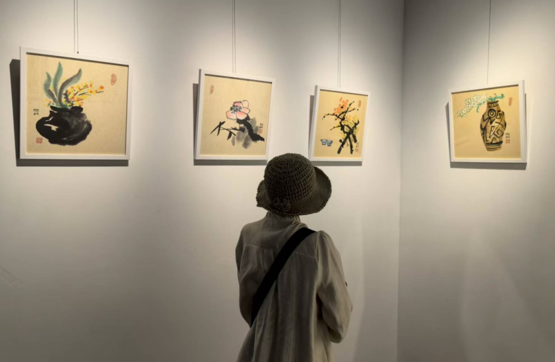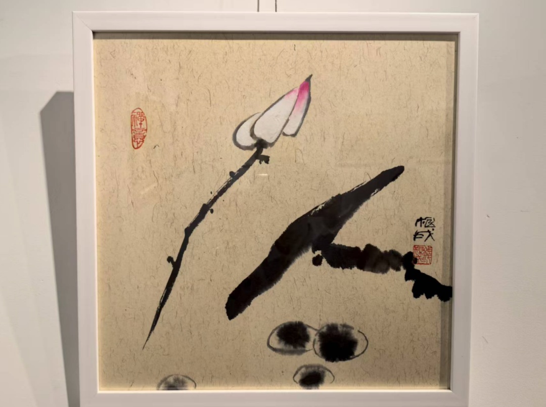 步入展厅,荷花作品的禅意悠远与梅花作品的傲骨铮铮形成鲜明呼应,精准捕捉了花卉不同的精神气质。这些作品虽多为小品画,却在简练笔墨中蕴藏十足意趣,正如钱根成所言:“世人皆爱花,因为花能装点生活,带来美的享受。此次带来这些以花为主题的小品画,就是希望能让这种美走入寻常百姓家,给大家的生活带来一点调剂、一点美。”
