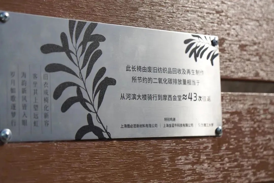 北外滩街道还为傲必思搭建了社区实践展示平台——双方携手打造创新型社区公共座椅,将废弃材料转化利用的创新技术应用于实际场景、走向居民生活。座椅选用废纺木塑、再生水磨石等新型环保材料,确保舒适耐用的同时,兼具环保与美观,实现低碳环保理念与绿色社区建设的融合。