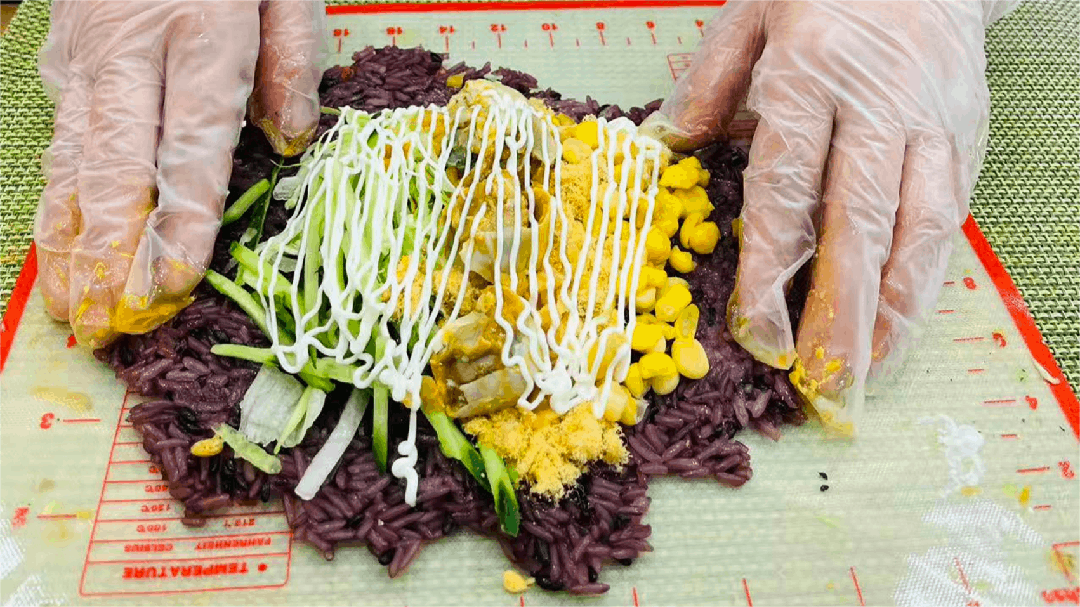 “这个饭团口感丰富,营养也很均衡,作为早餐蛮合适的。”全海斌点赞道。