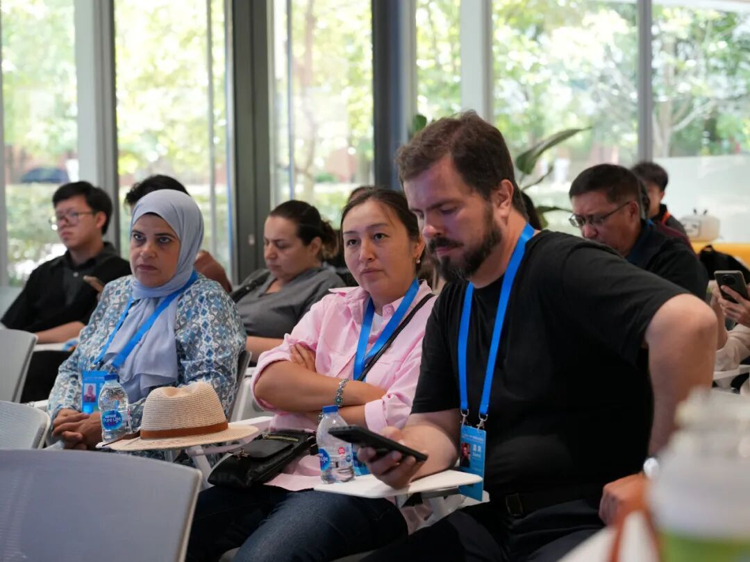 在现场举行的互动交流会上,外媒记者踊跃提问,对V聚场表现出浓厚兴趣。运营负责人一一解答,并详细介绍了杨浦“大学-大厂-大V”融合共生的“创新大三角”模式。来自巴基斯坦中巴经济走廊每日新闻网的首席数字官易卜拉欣·马利克沉浸式调研后不禁赞叹:“这里为创作者提供的全方位支持令人印象深刻,我都能想象自己在这里办公的样子!”