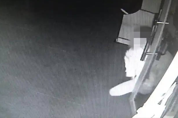 犯罪嫌疑人从门缝间隙中侧身钻入公司