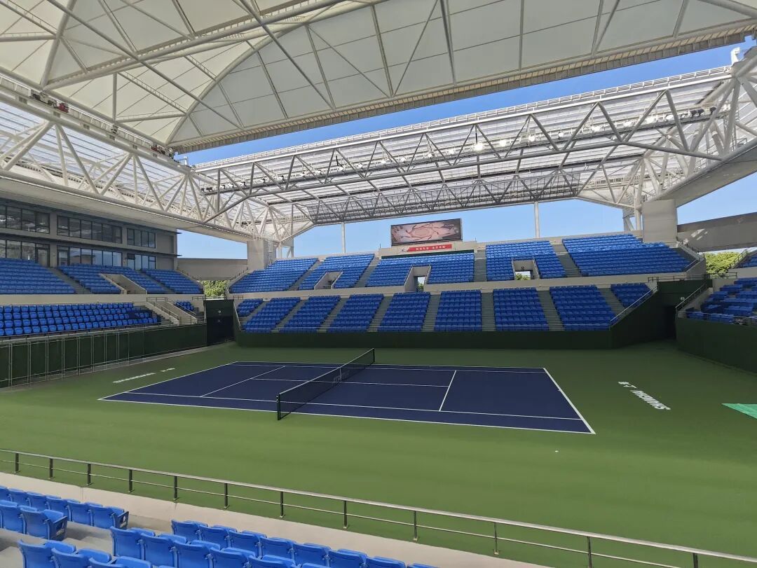 本次工程对旗忠网球中心2号馆实施了建成以来最大规模的焕新,加装可开启屋盖、翻新看台及外立面,打造出契合当代赛事需求的全天候现代化室内场馆。同时,新建的17号室外场地及其附属设施,配备可容纳1200人以上的看台和完整的照明、扩声、功能用房与机电系统,显著提升了整体赛事运营能力,优化了运动员训练环境,并为现场观众带来更沉浸的互动体验。 自3月27日取得施工许可正式开工后,项目组制定了施工组织计划,尤其针对钢结构施工等关键环节,组织多方进行技术论证,最终形成“信息化构件加工+精准胎架拼装+系统化重型吊装”等科学合理的实施方案。从构件生产、运输,到地面拼装与屋顶组装,全程严格把控施工进度,持续对照计划进行动态调整与优化。同时,项目组提前识别各类施工风险,针对高温、梅雨、台风等恶劣天气制定了专项预案,并通过协同办公机制不断优化作业流程,提升施工效率。 旗忠网球中心2号馆及17号场地的竣工,不仅是硬件设施的跨越式升级,更是场馆二十年再出发的崭新起点。焕新升级的旗忠网球中心必将以更卓越的设施、更优质的服务,迎接球员与球迷的到来,共同见证一场极具魅力的网球盛会。