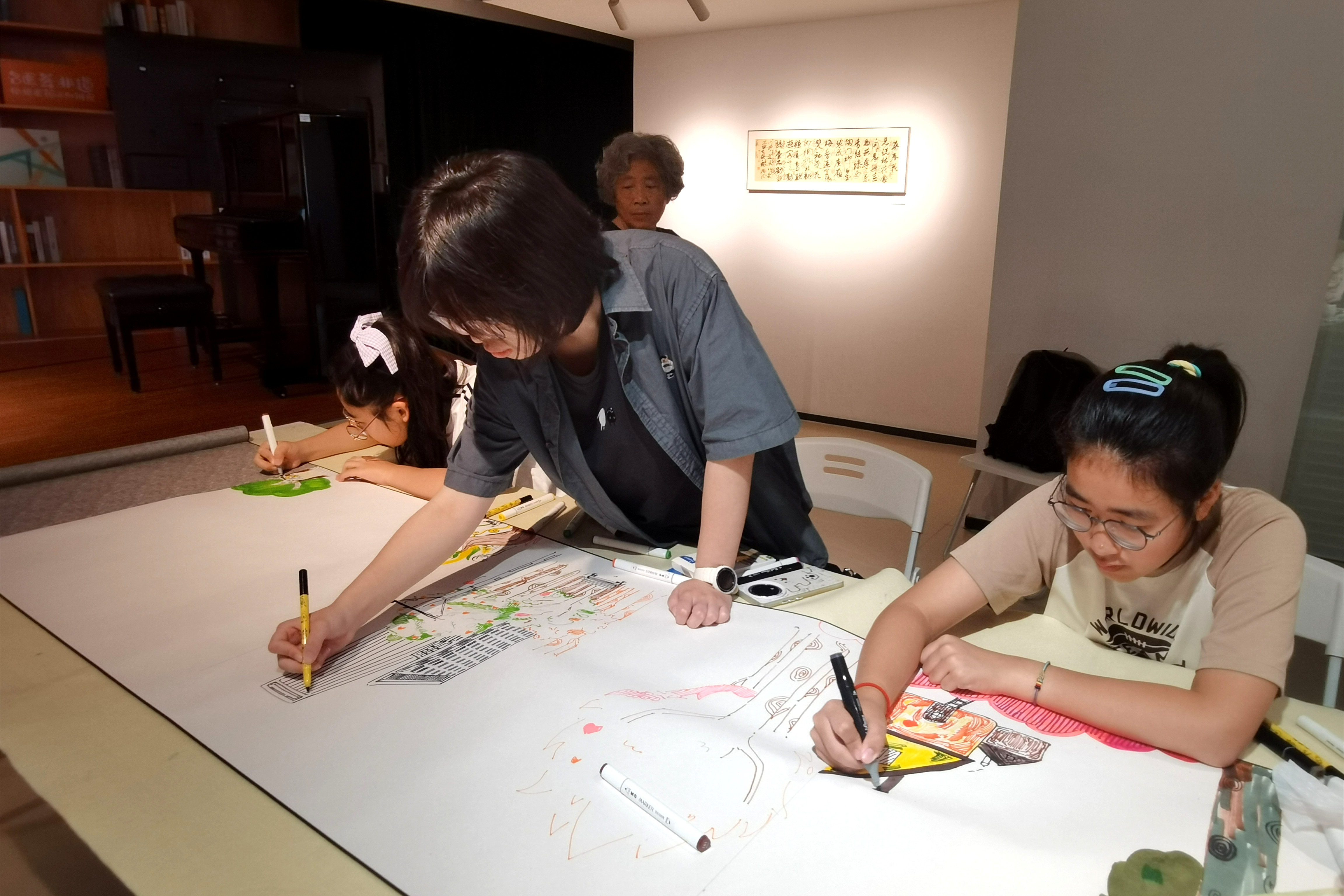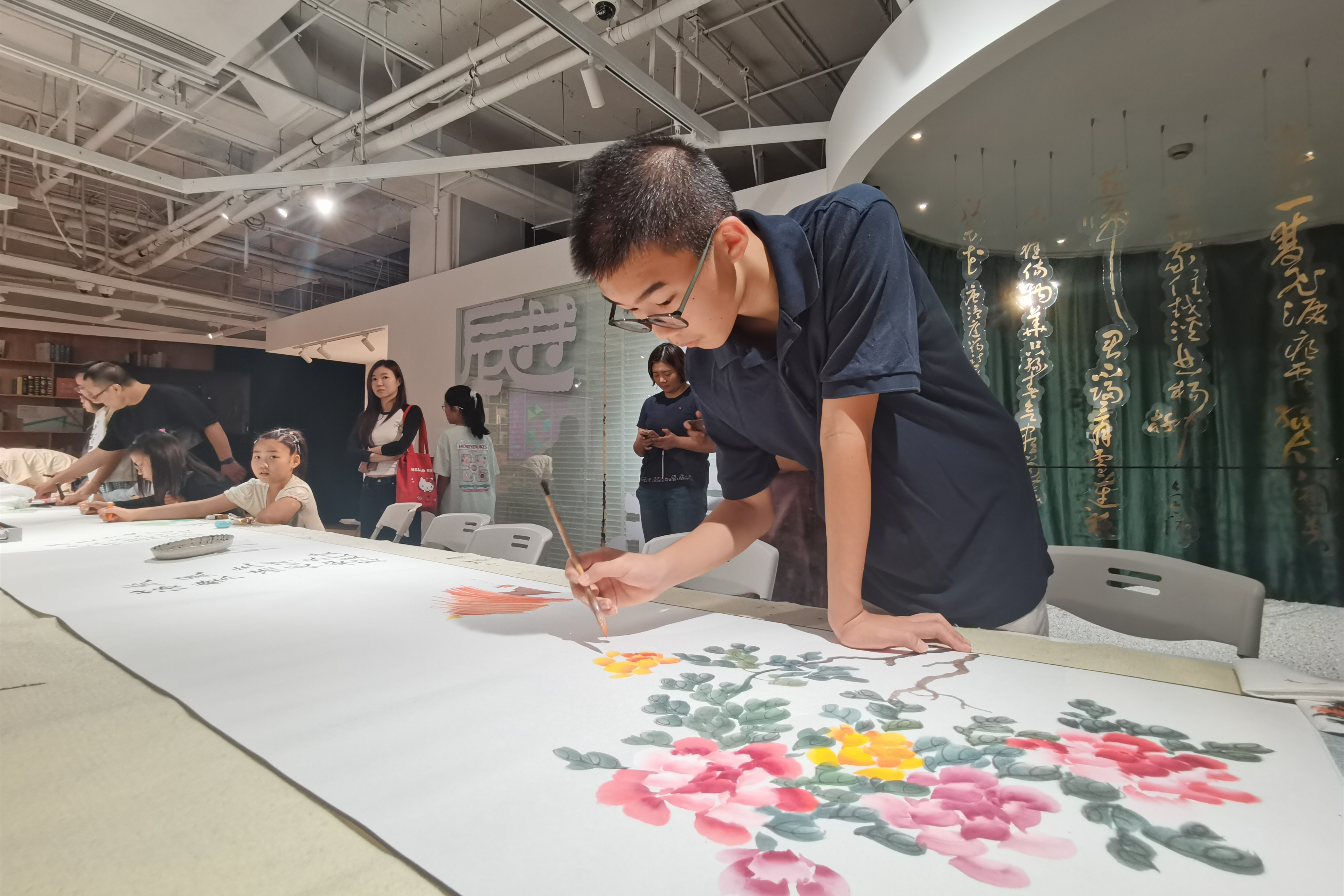 作品展开幕前,参展的小书法家、小画家们还在长卷上挥笔泼墨,进行即兴创作。大师从这里起步,并非一句遥远的期许,而是对每一颗艺术童心的珍视与见证。这个舞台,为孩子们打开一扇认识世界、探索自我的艺术之窗,让他们在创作中收获成长,在交流中点燃热爱,在艺术道路上勇敢探索,稳步成长为照亮艺术领域的新星,书写属于自己的艺术篇章。