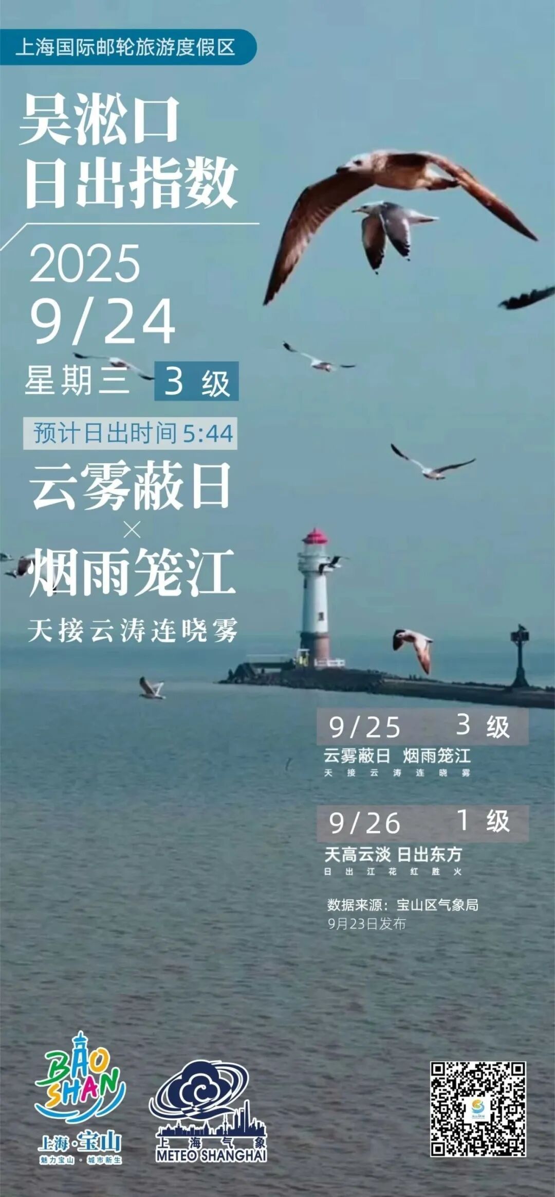 【吴淞口日出指数】9月24日3级 云雾蔽日×烟雨笼江